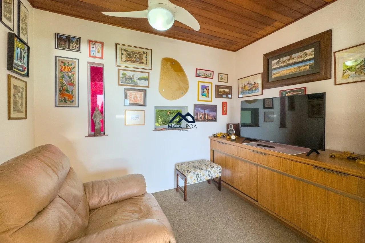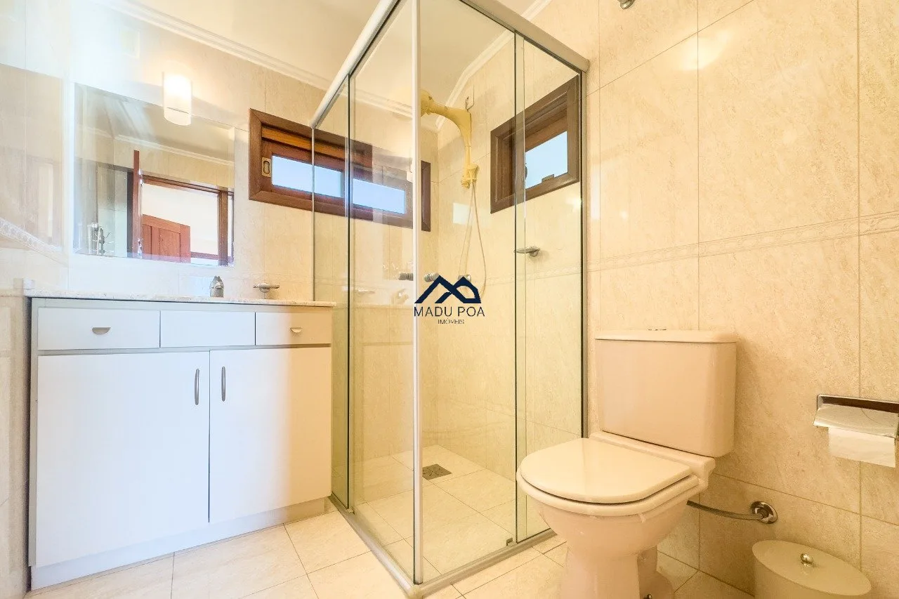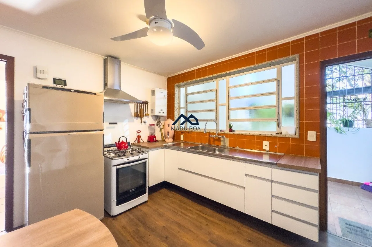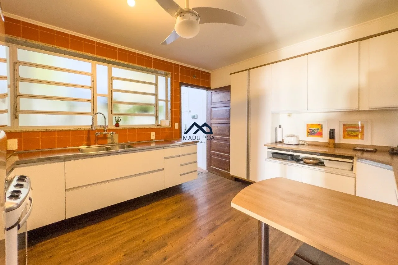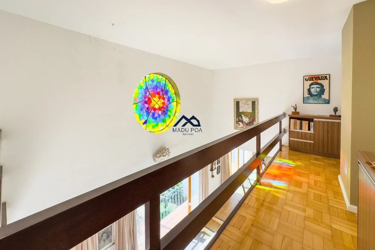 Living para dois ambientes com sacada e lareira e vista livre para o rio. Copa cozinha com móveis sob medida. Três dormitórios sendo uma suíte. Espaço gourmet com churrasqueira e fogão à lenha. Banheiro social, lavanderia, garagem. Pátio com piscina e vista deslumbrante para o Guaíba.