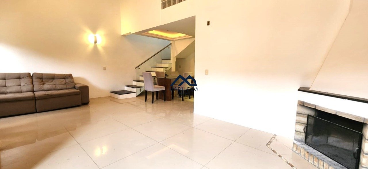 1º Pavimento: Living para dois ambientes com lareira, dois dormitórios, banheiro social, copa cozinha, área de serviço, pátio privativo com piscina, garagem coberta para dois carros e ampla área gourmet com churrasqueira