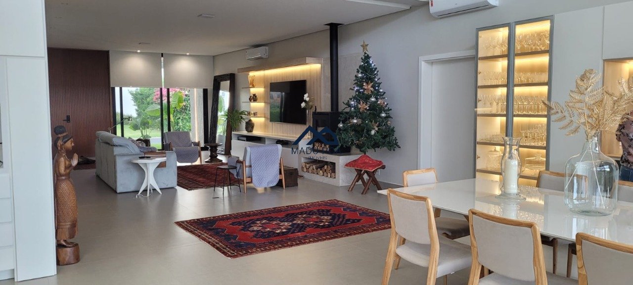 Casa semi mobiliada, com todos os móveis sob medida, fogão embutido, cervejeira, forno elétrico, máquina de lavar louças, Rerigerador LG Duplex Smart Inverter, 02 TV sendo uma 32″ e 55″, 06 Splits, linda mesa de jantar 08 lugares. living totalmente integrado, sala estar, jantar, espaço gourmet, escritório, lavabo, banheiro empregada. Com três amplas suítes todas com piso do banheiro aquecido e closet.