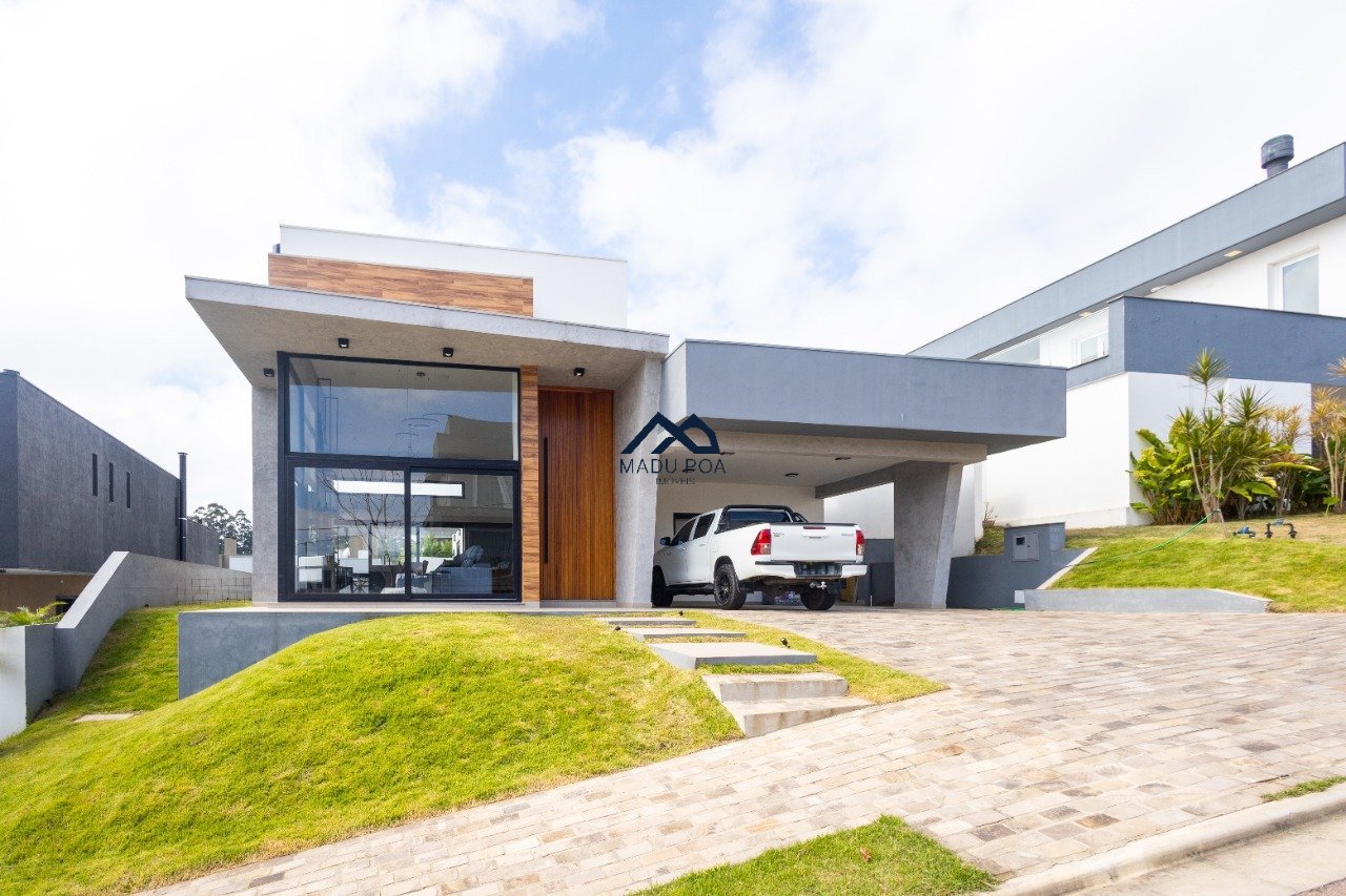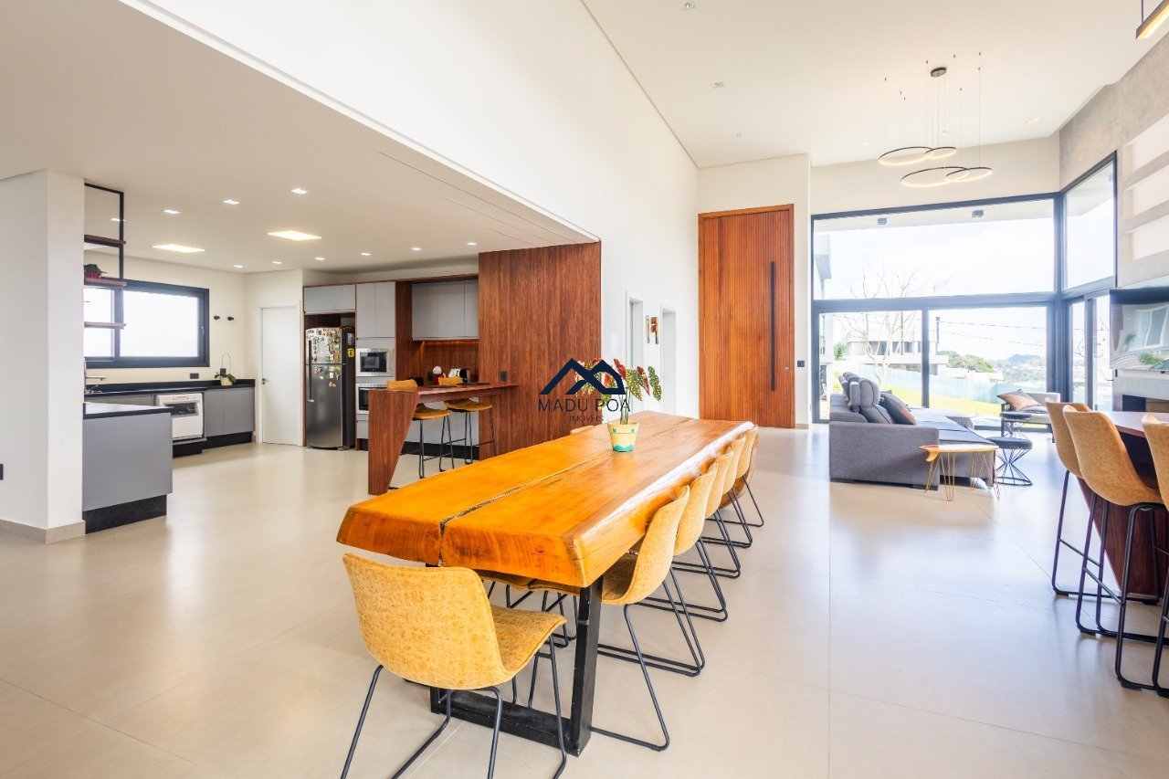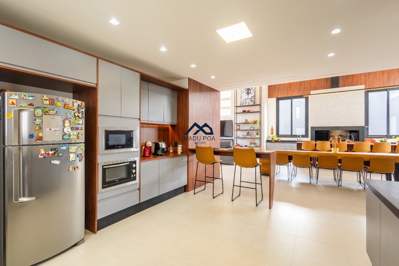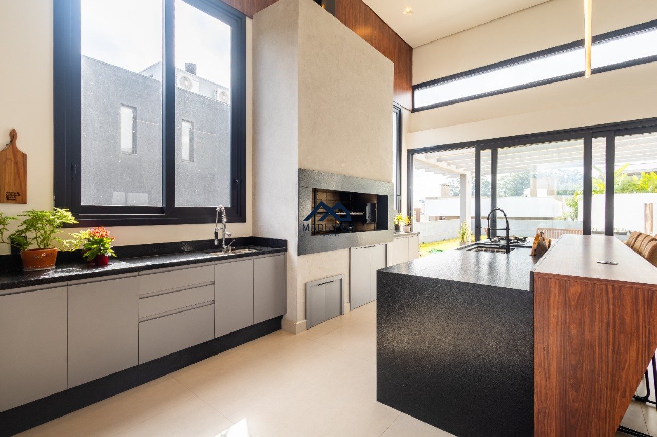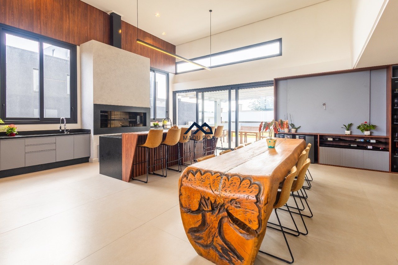 Possui hall de entrada amplo, living com pé direito duplo com lareira, lavabo espaço gourmet com 55m² integrado a um pergolado e lindo pátio , copa-cozinha, área de serviço, escritório, 03 suítes, sendo 01 master e 03 vagas de garagem cobertas.