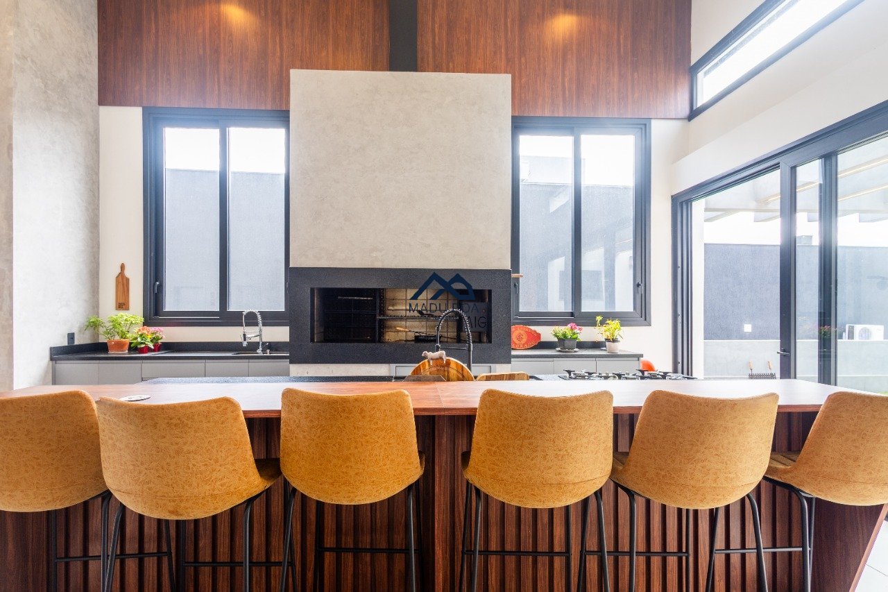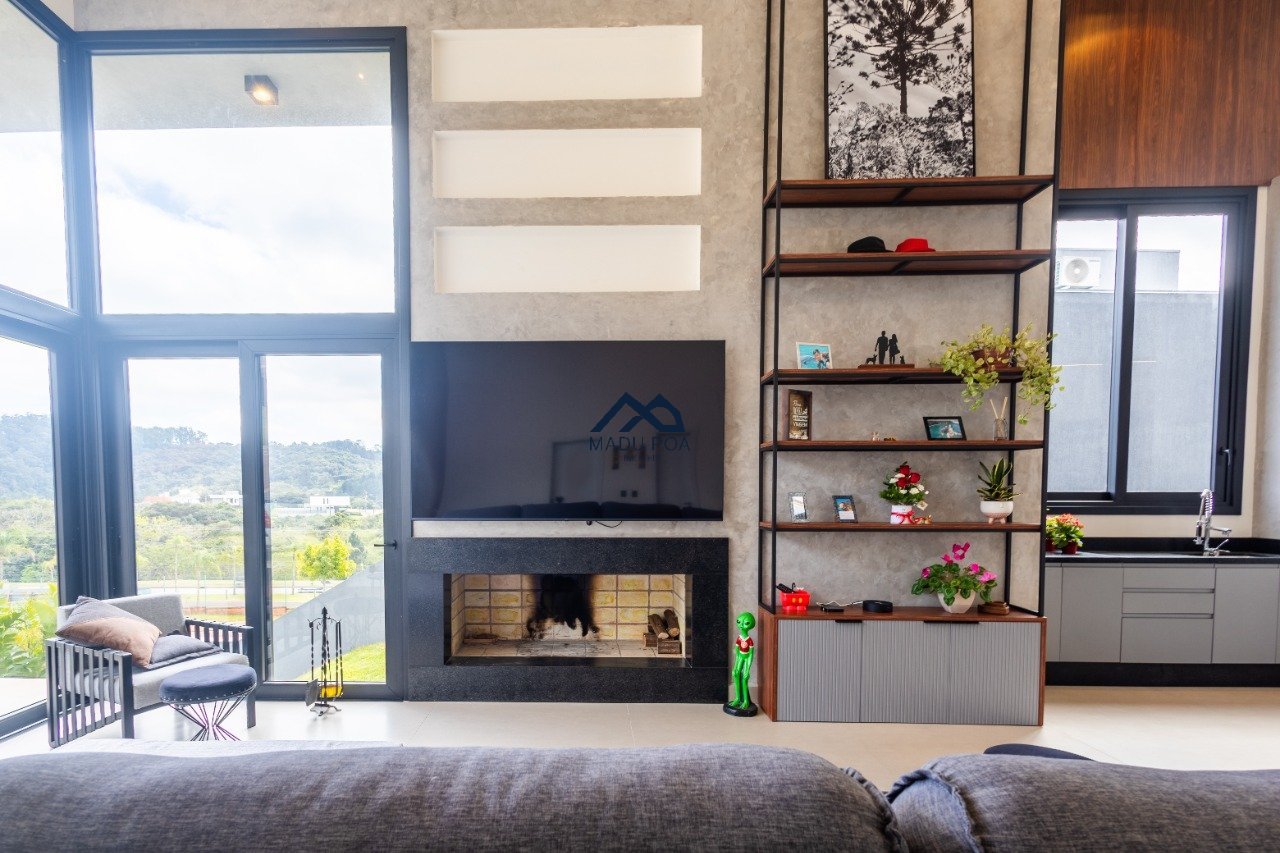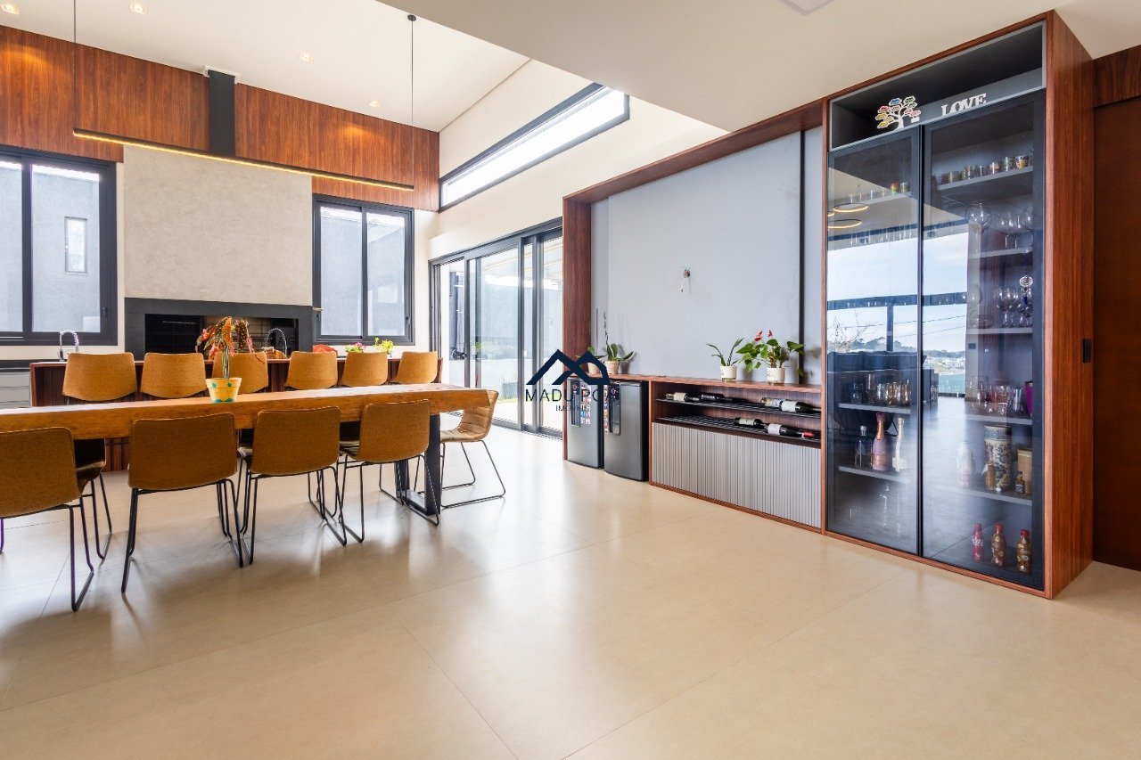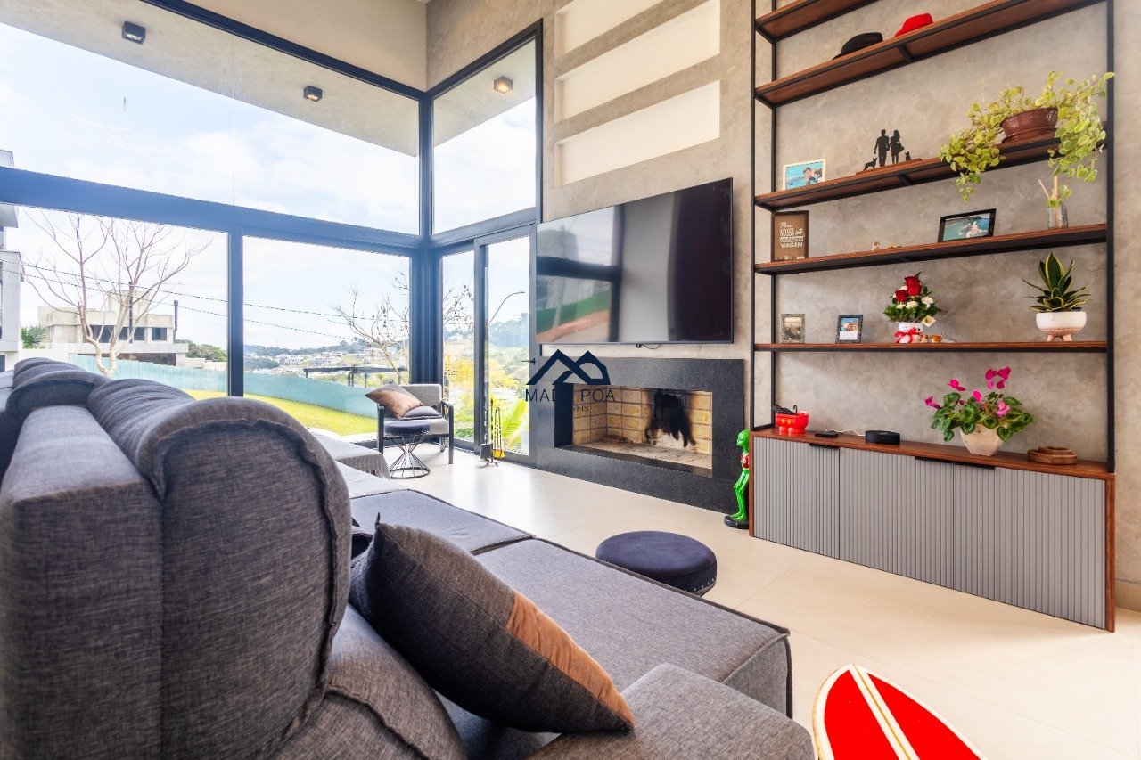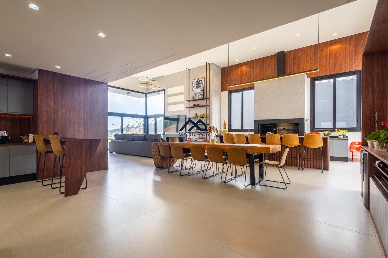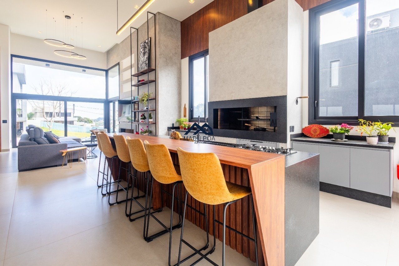 Possui hall de entrada amplo, living com pé direito duplo com lareira, lavabo espaço gourmet com 55m² integrado a um pergolado e lindo pátio , copa-cozinha, área de serviço, escritório, 03 suítes, sendo 01 master e 03 vagas de garagem cobertas.