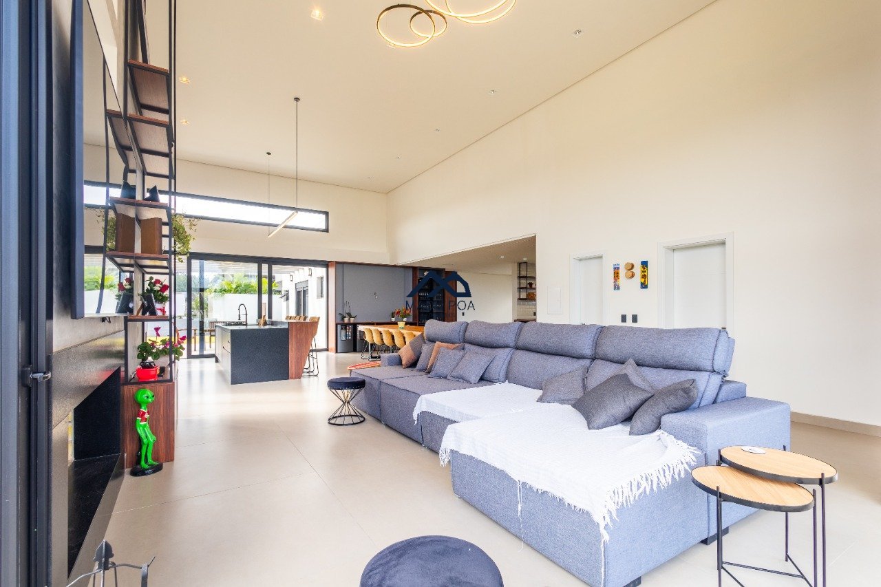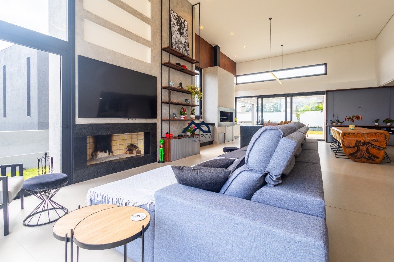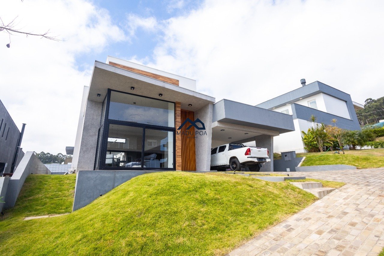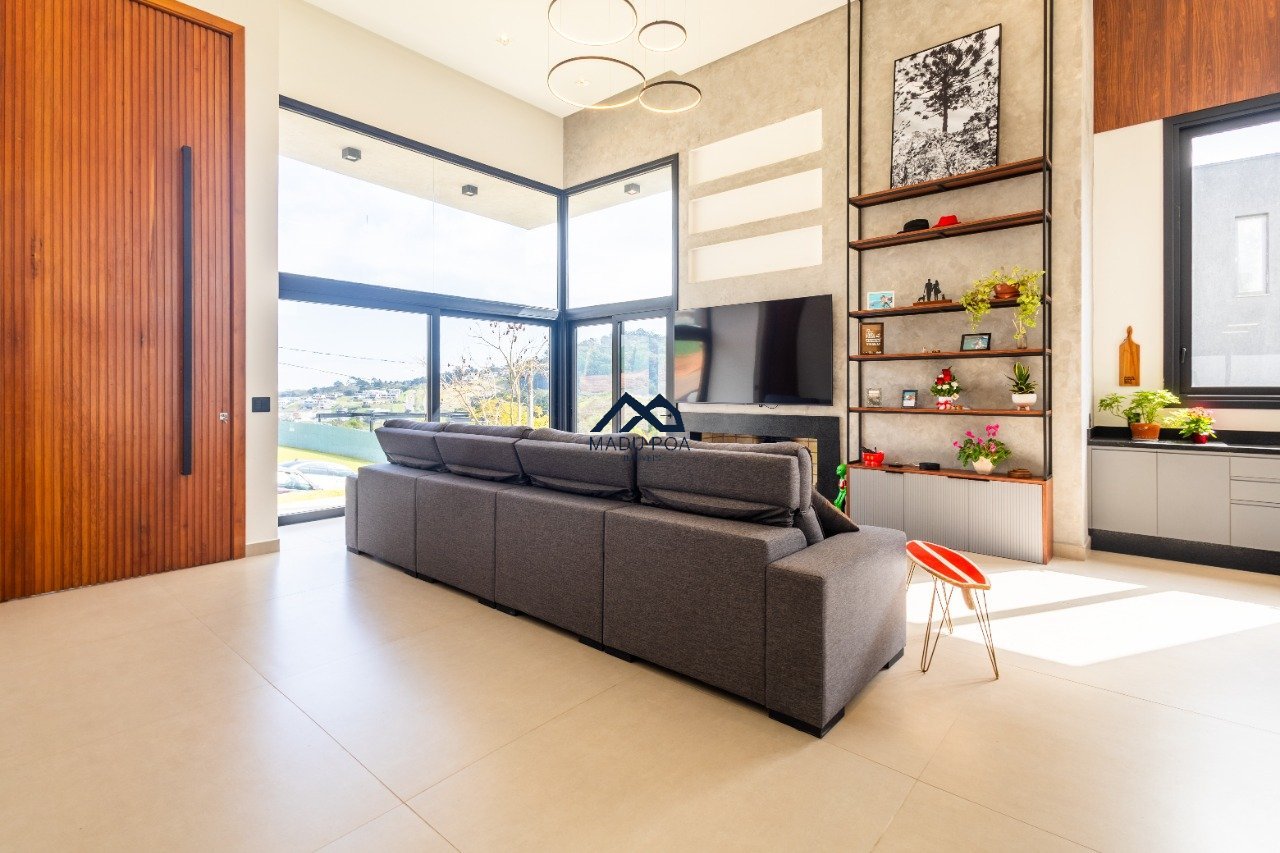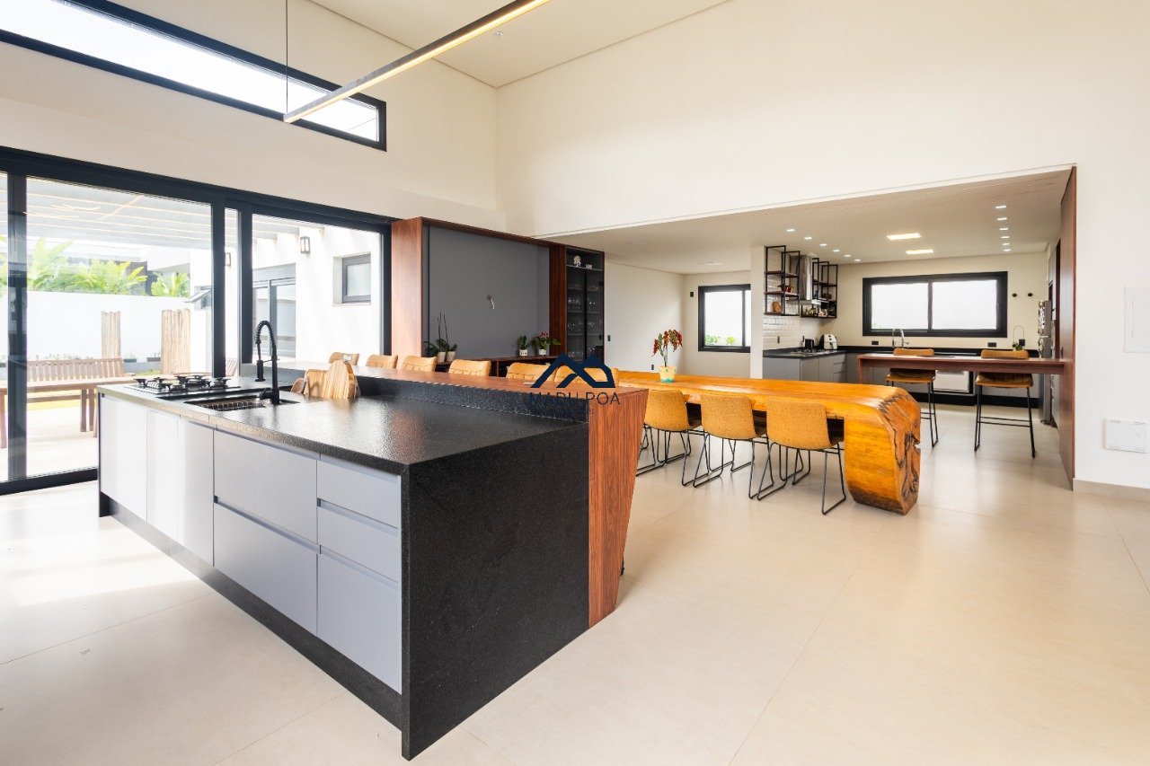 Possui hall de entrada amplo, living com pé direito duplo com lareira, lavabo espaço gourmet com 55m² integrado a um pergolado e lindo pátio , copa-cozinha, área de serviço, escritório, 03 suítes, sendo 01 master e 03 vagas de garagem cobertas.