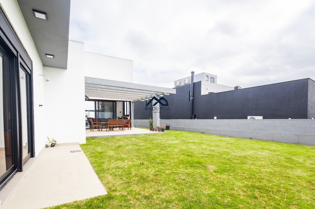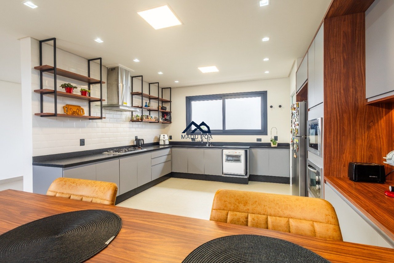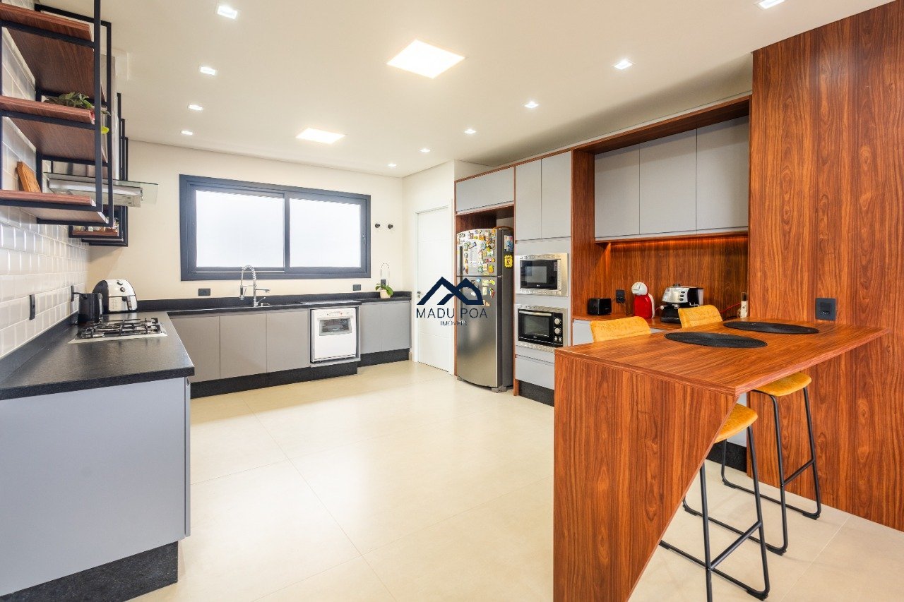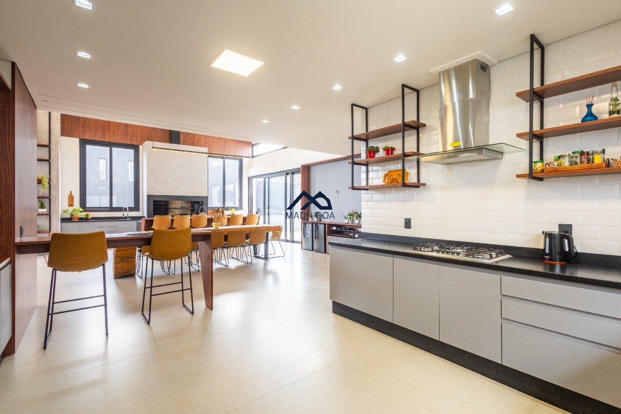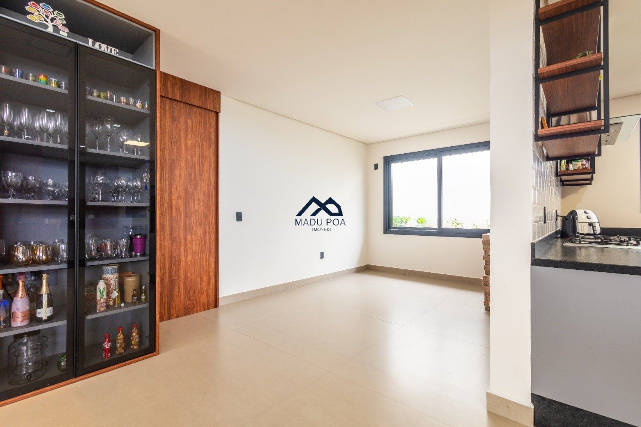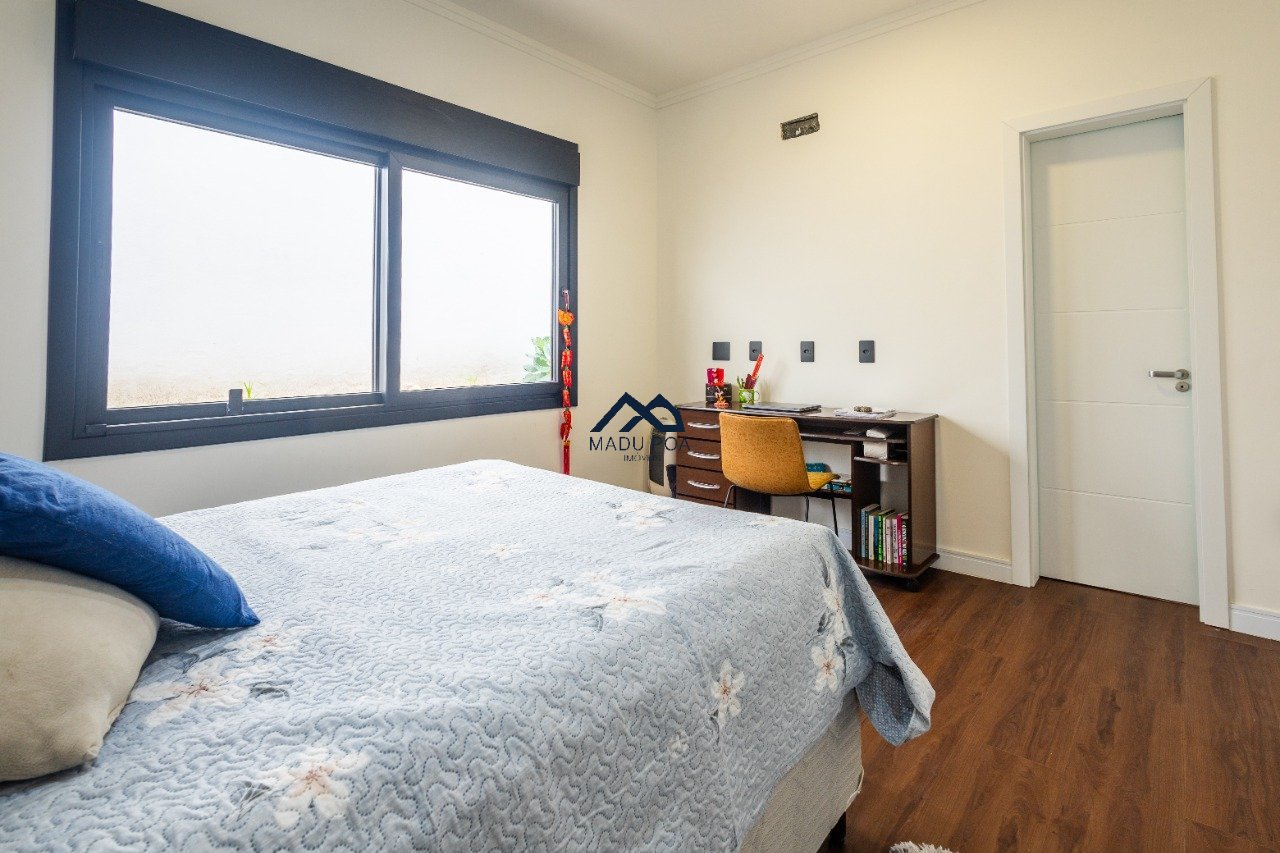 Possui hall de entrada amplo, living com pé direito duplo com lareira, lavabo espaço gourmet com 55m² integrado a um pergolado e lindo pátio , copa-cozinha, área de serviço, escritório, 03 suítes, sendo 01 master e 03 vagas de garagem cobertas.