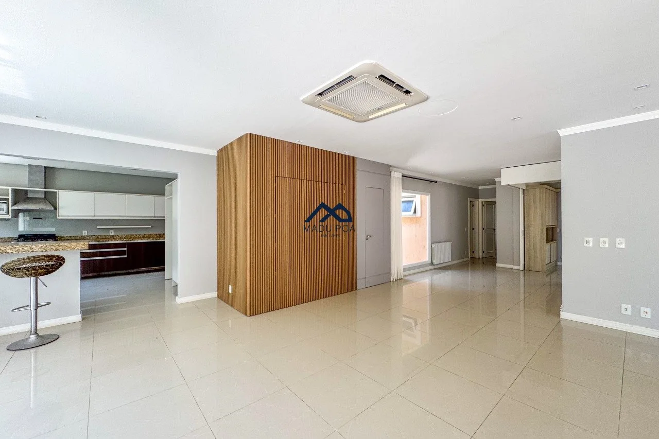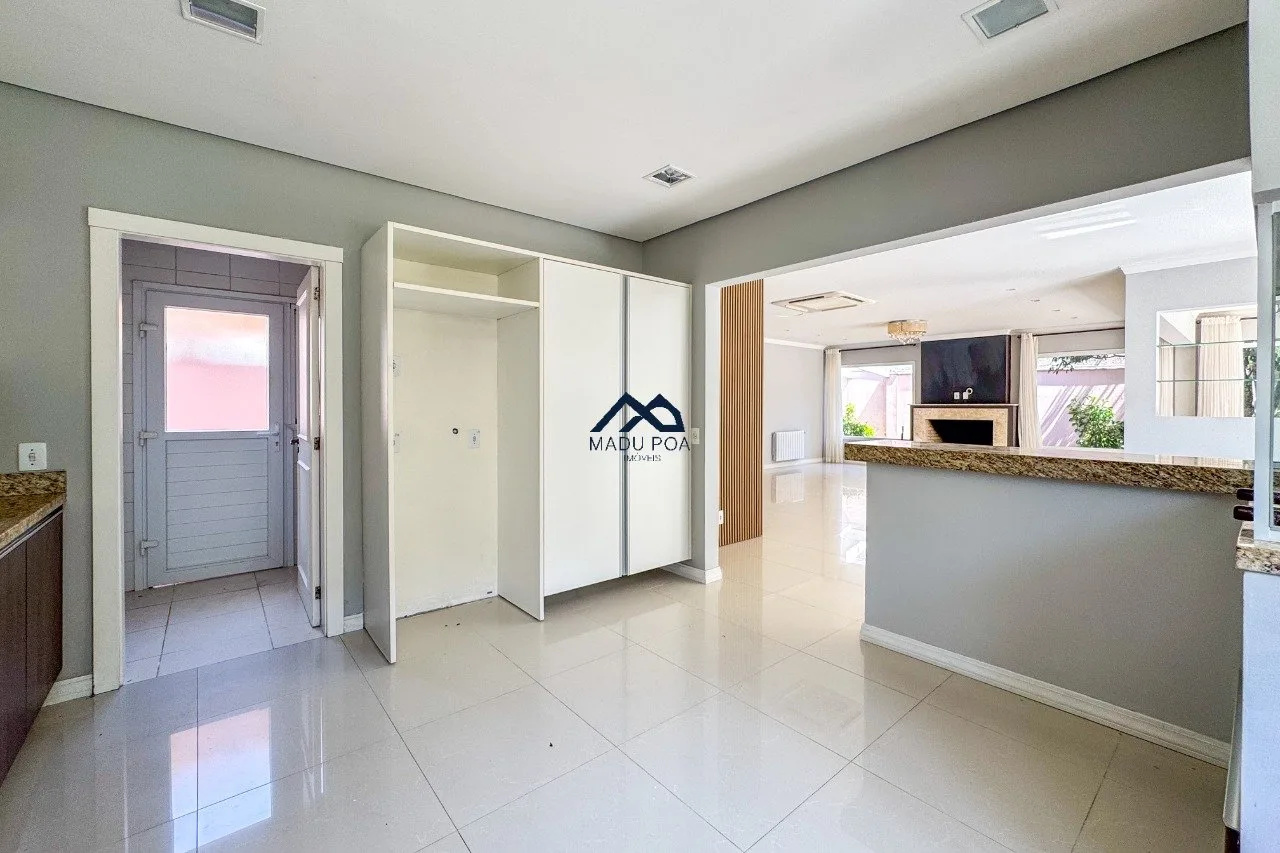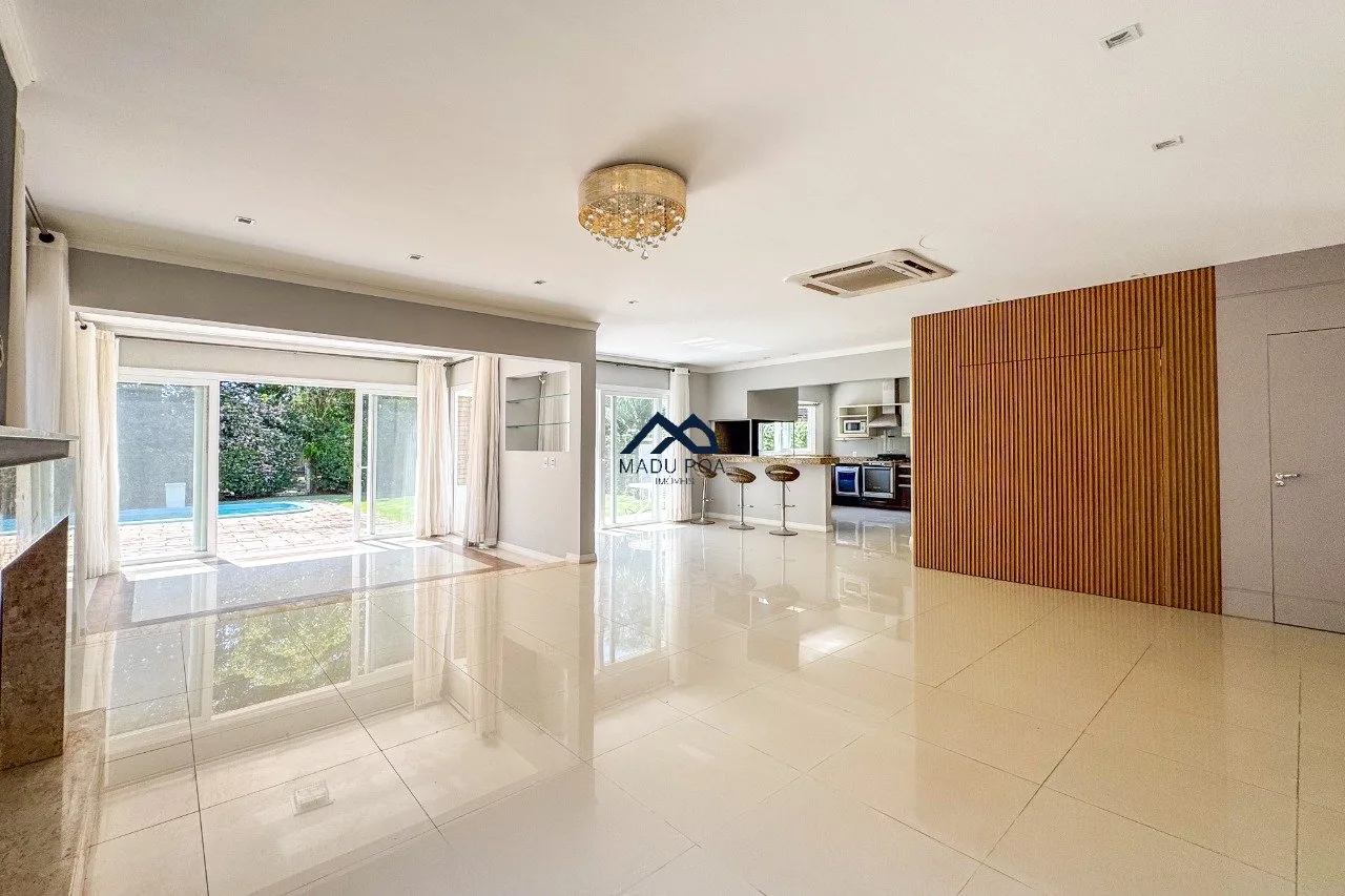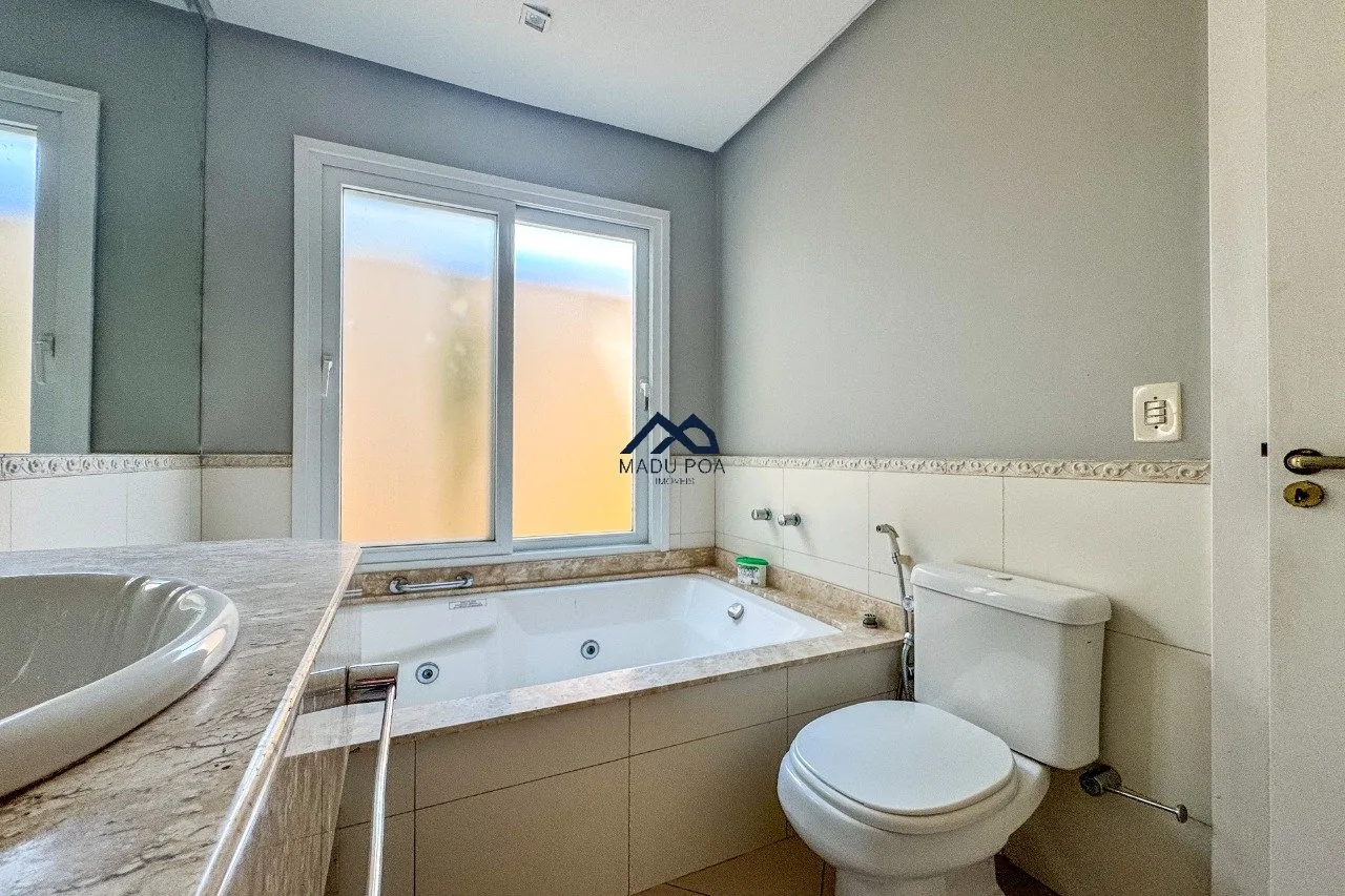 Com 02 suítes, sendo uma máster com closet e banheira de hidromassagem, gabinete com opção para 3º dormitório, lavabo, living para 3 ambientes com lareira, cozinha conceito aberto com área gourmet, churrasqueira, lavandeira e área de serviço completa.