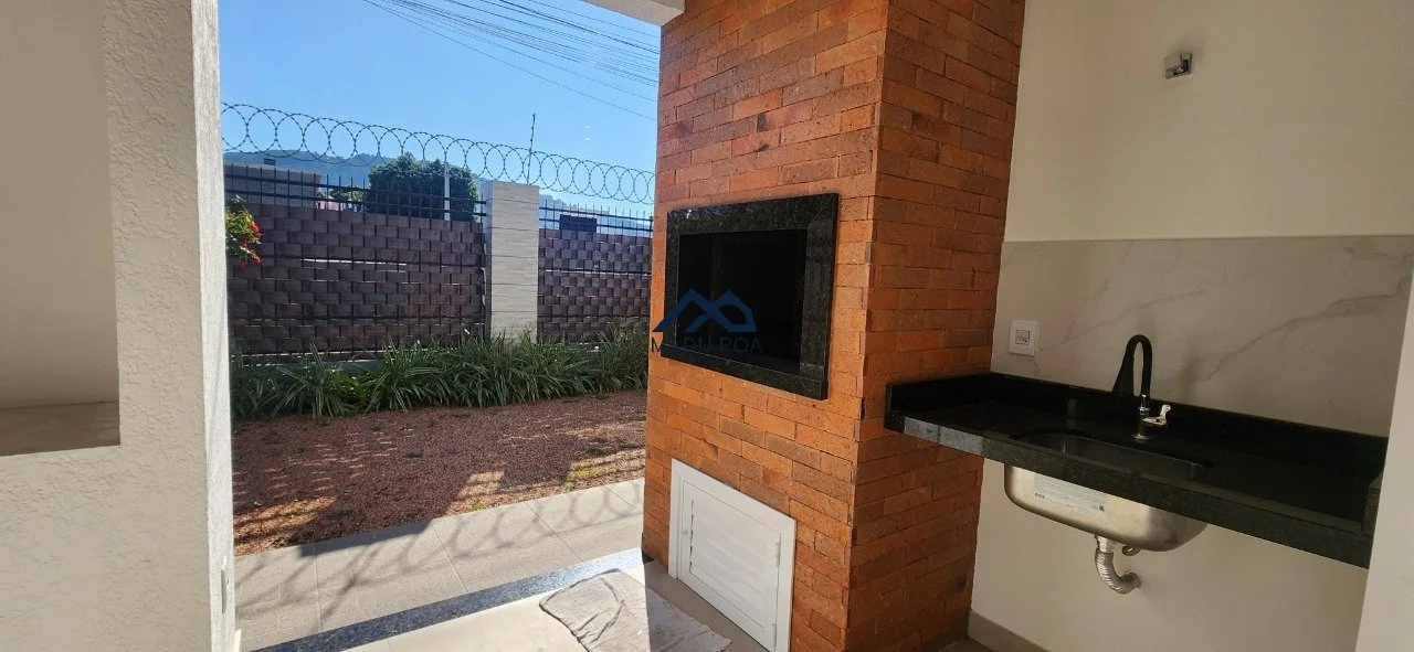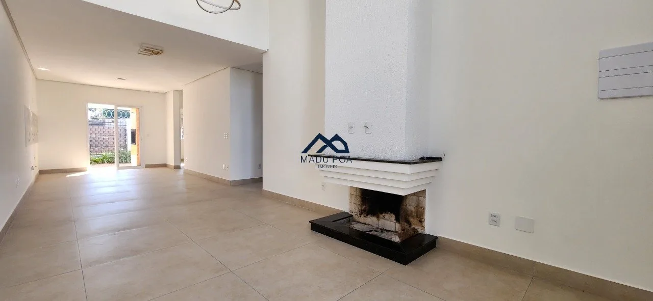 Living para dois ambientes com pé direito duplo, lareira, jardim de inverno, cozinha integrada, varanda gourmet com churrasqueira e área de serviço, pátio com grama e sol da tarde. Três excelentes dormitórios, sendo uma suíte e banheiro social.