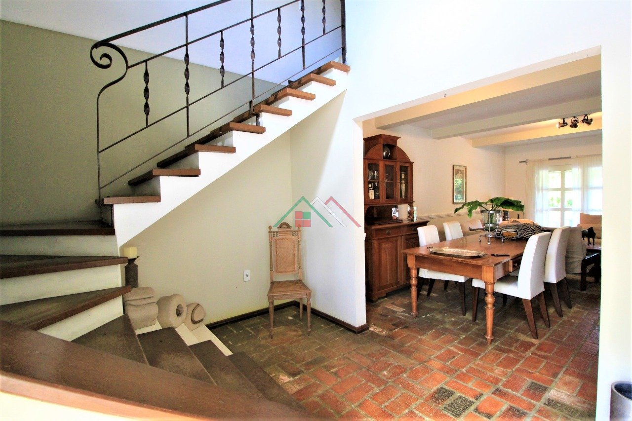 1ºPavimento: Amplo living com lareira, gabinete com banheiro, lavabo, copa cozinha, espaço gourmet com churrasqueira, lavanderia, garagem para dois carros.