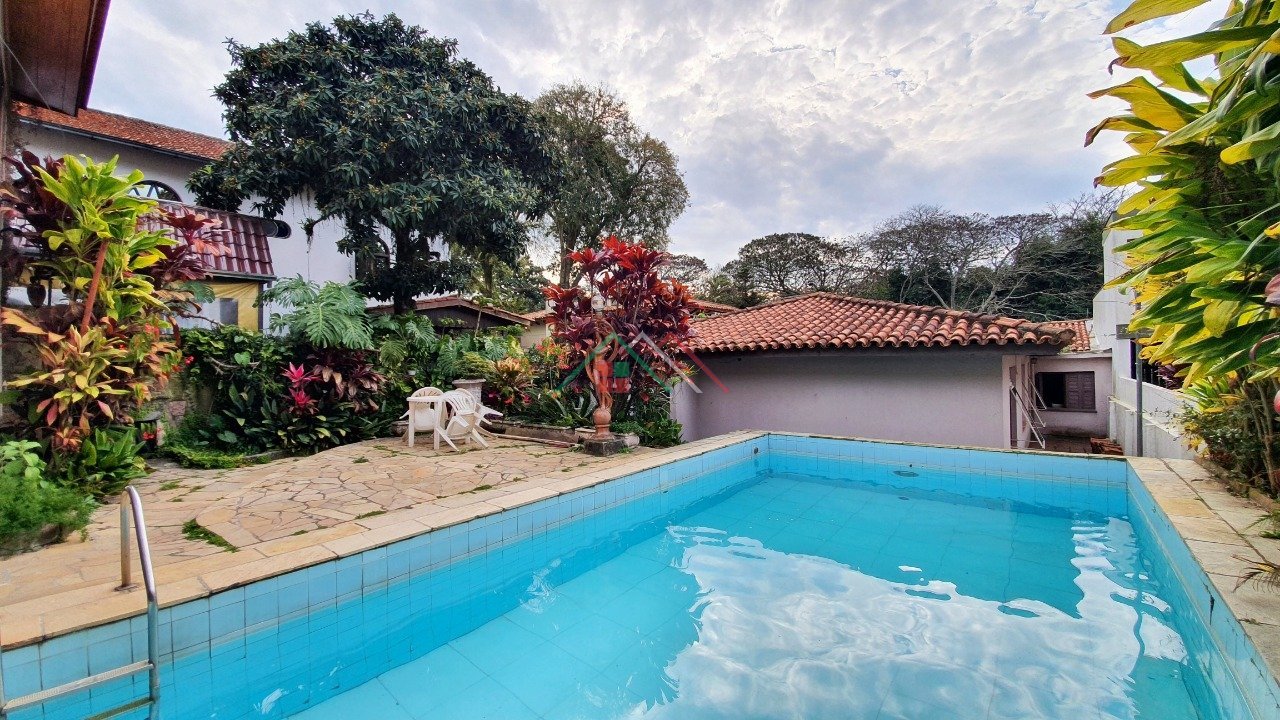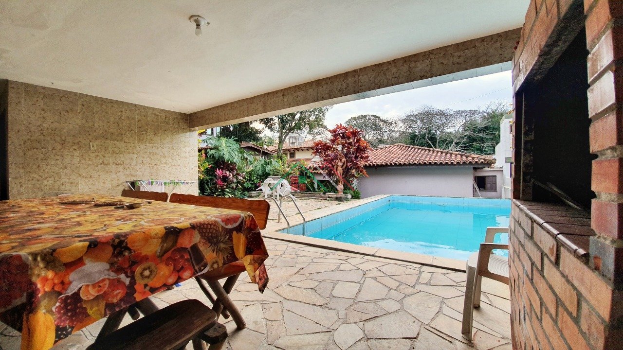 Na parte dos fundos, espaço com churrasqueira, e mais 02 dormitórios com um banheiro, podendo fazer um apartamento, junto ao pátio com piscina e garagem para 03 carros.