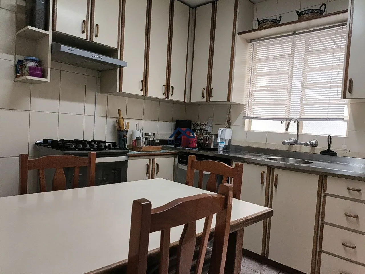 São três dormitórios, sendo uma suíte e banheiro social.