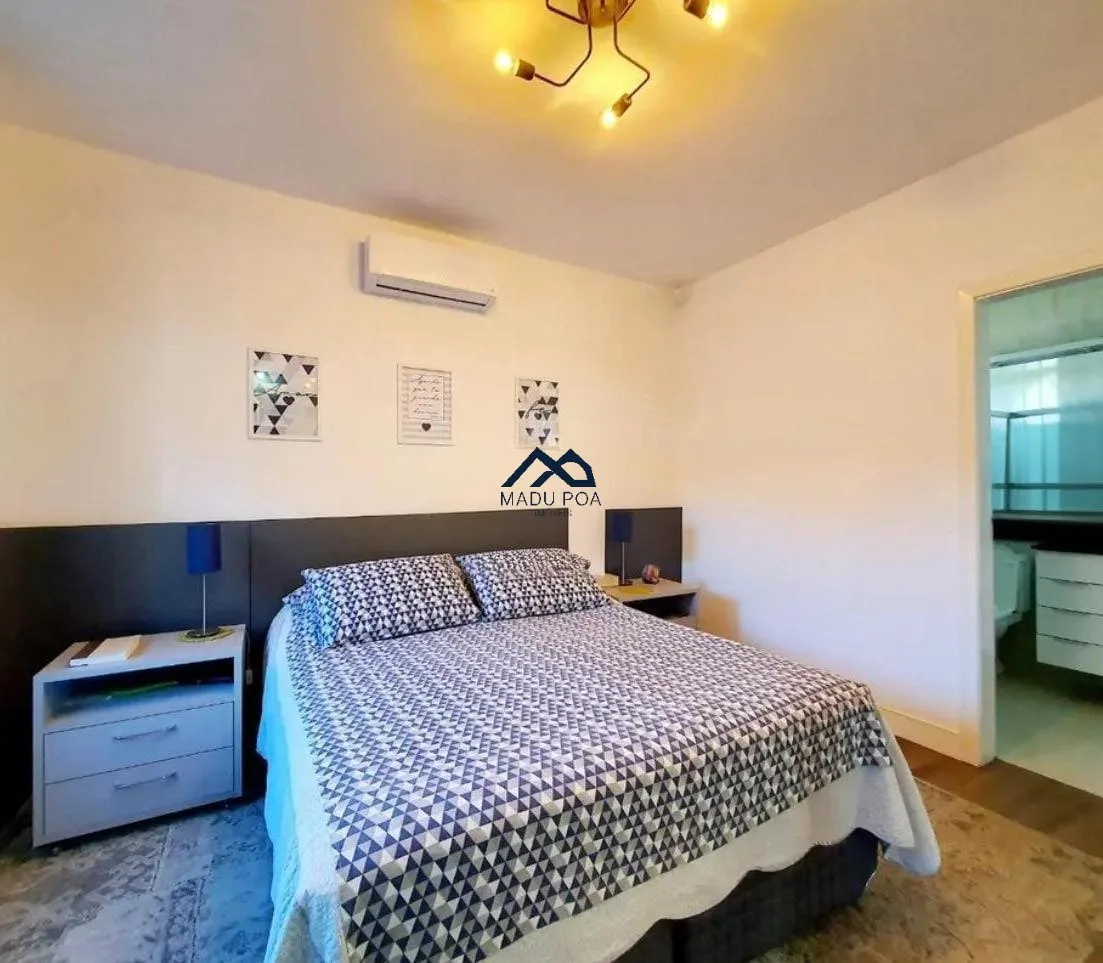 São três dormitórios, sendo uma suíte com closet, banheiro social com ventilação natural e todos ambientes com split.