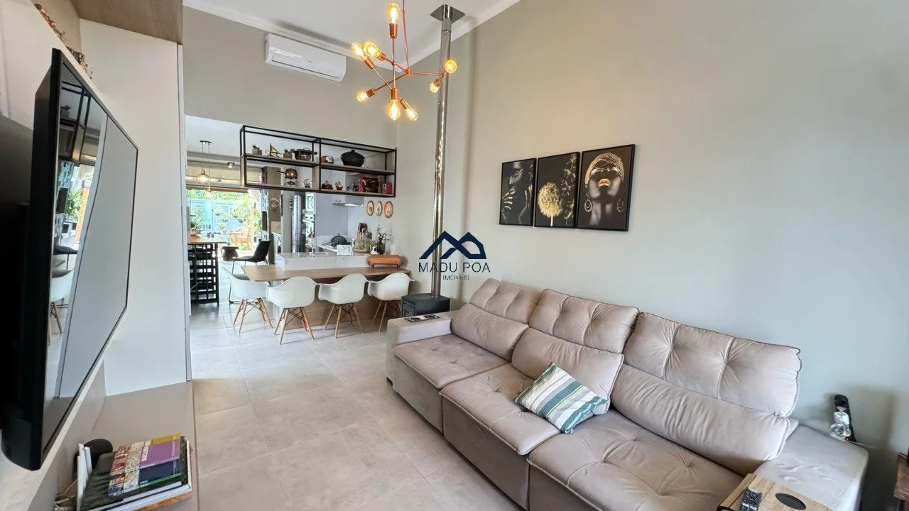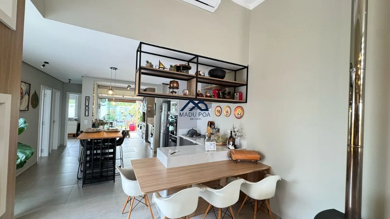 Com 03 dormitórios, sendo 01 suíte, banheiro auxiliar, living para 02 ambientes com cozinha conceito aberto, churrasqueira, em um espaço aconchegante para reunir os familiares e amigos e com acesso ao pátio e a piscina.