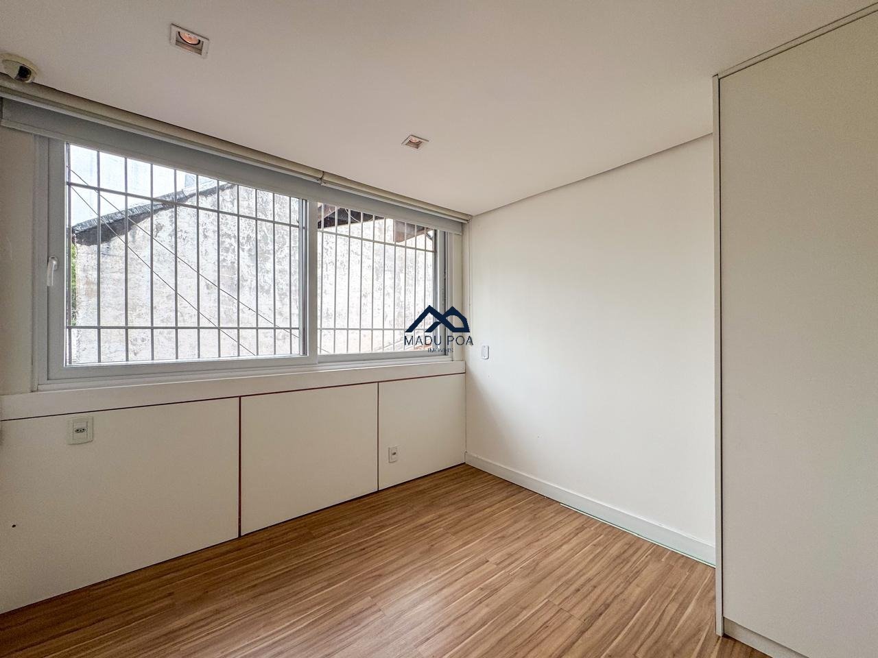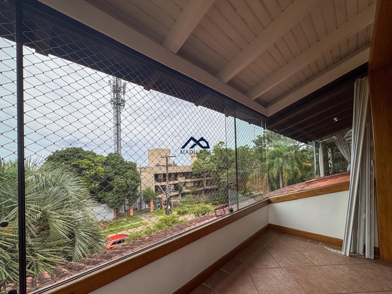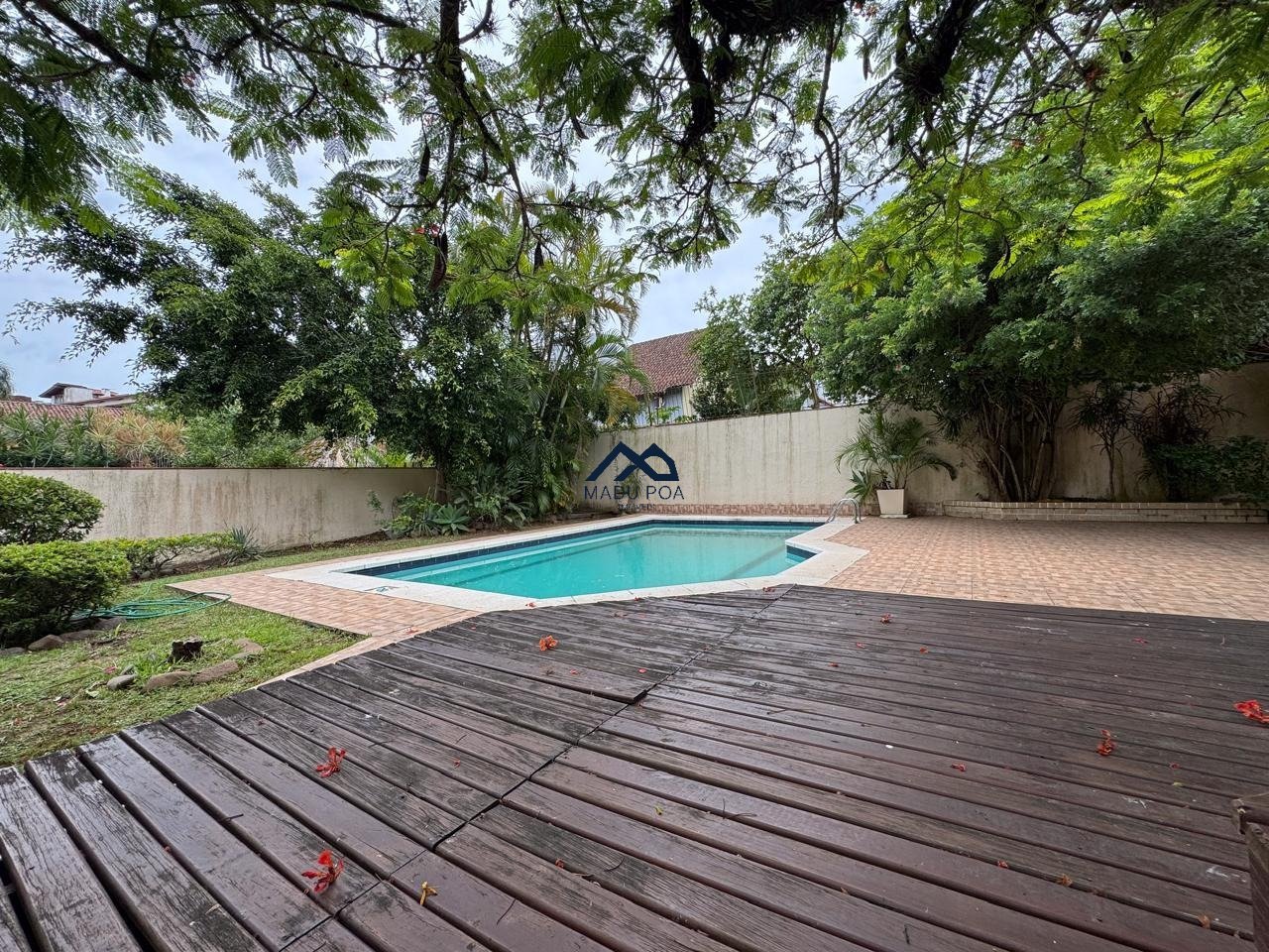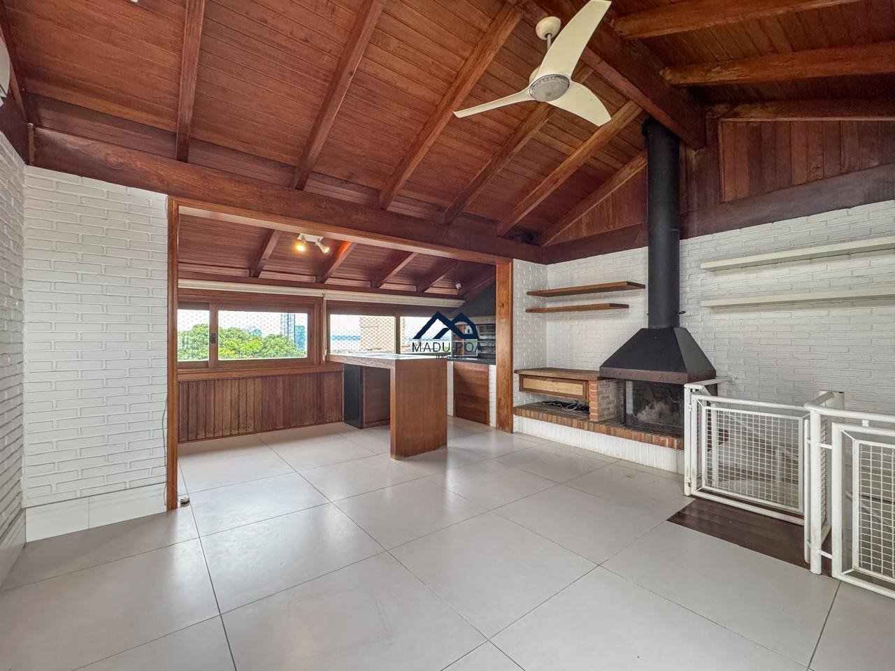 No andar superior: lareira, churrasqueira, adega, banheiro, vista para o rio Guaíba, terraço com uma banheira de hidromassagem.
