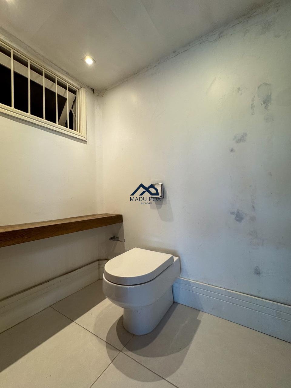 No andar térreo tem um quarto com banheiro que pertence a cobertura, podendo ser usado como um gabinete.