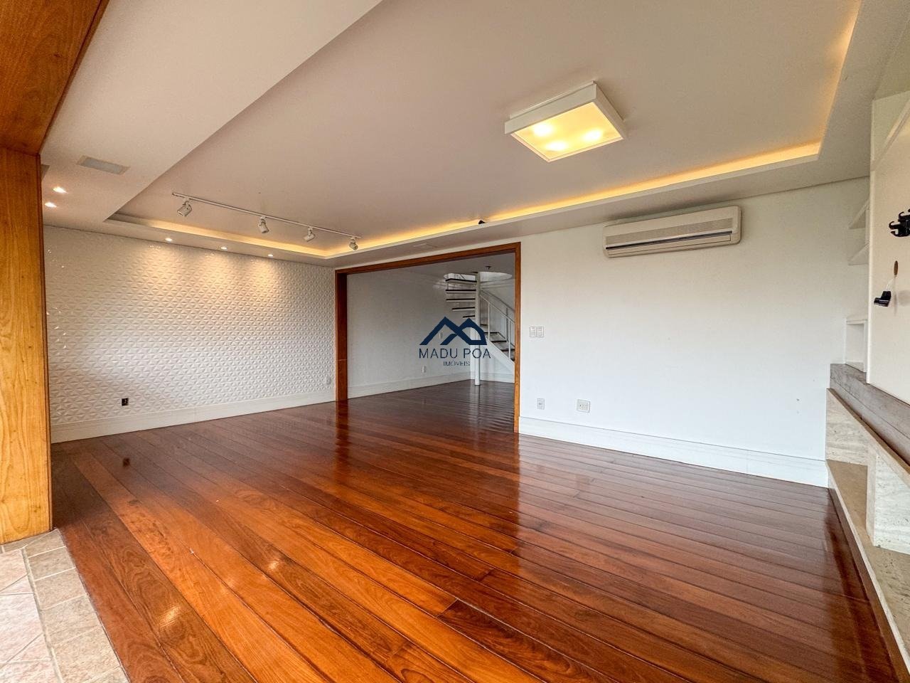 Cobertura à venda no bairro Cristal, com 238m² de área privativa, semimobiliada, com 03 dormitórios, sendo 01 suíte Master com banheira de hidromassagem, amplo living para 03 ambientes com lareira, sacada ,cozinha americana e área de serviço e 02 vagas de garagem cobertas.