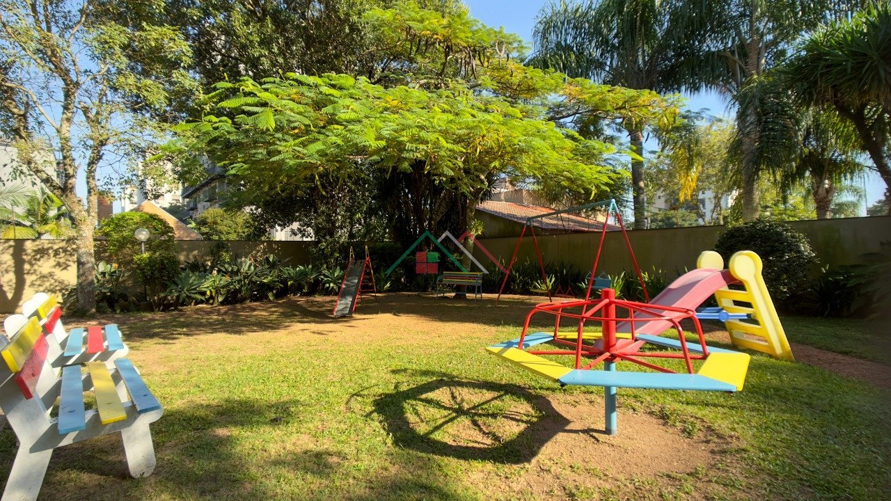 Condomínio com portaria 24 horas, salão de festas e playground.