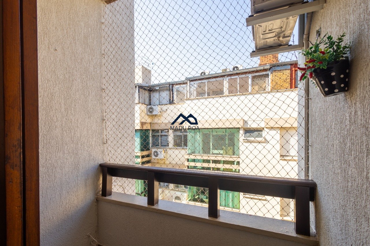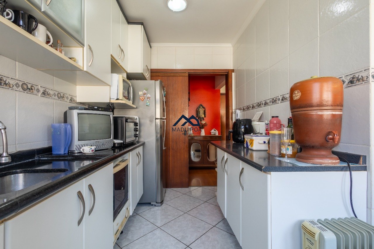 Condomínio com interfone, zelador, elevador e salão de festas.