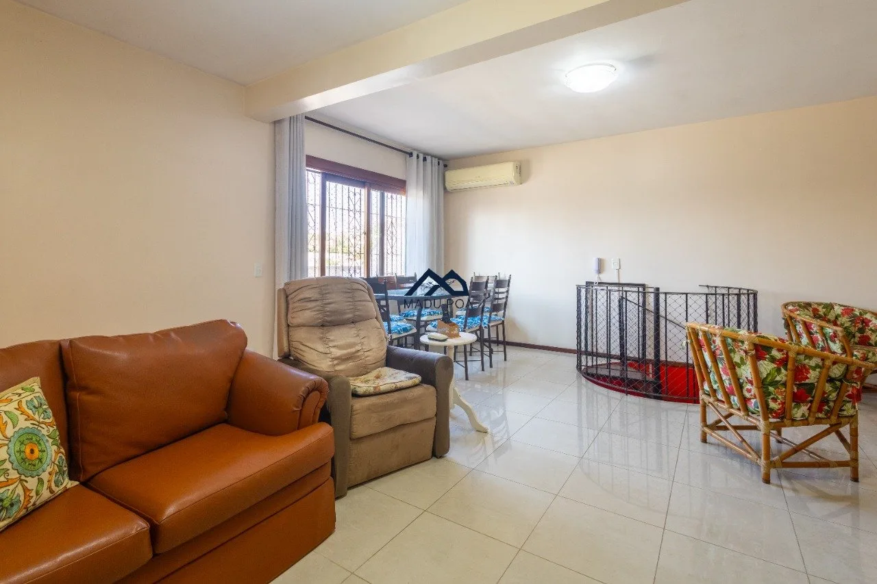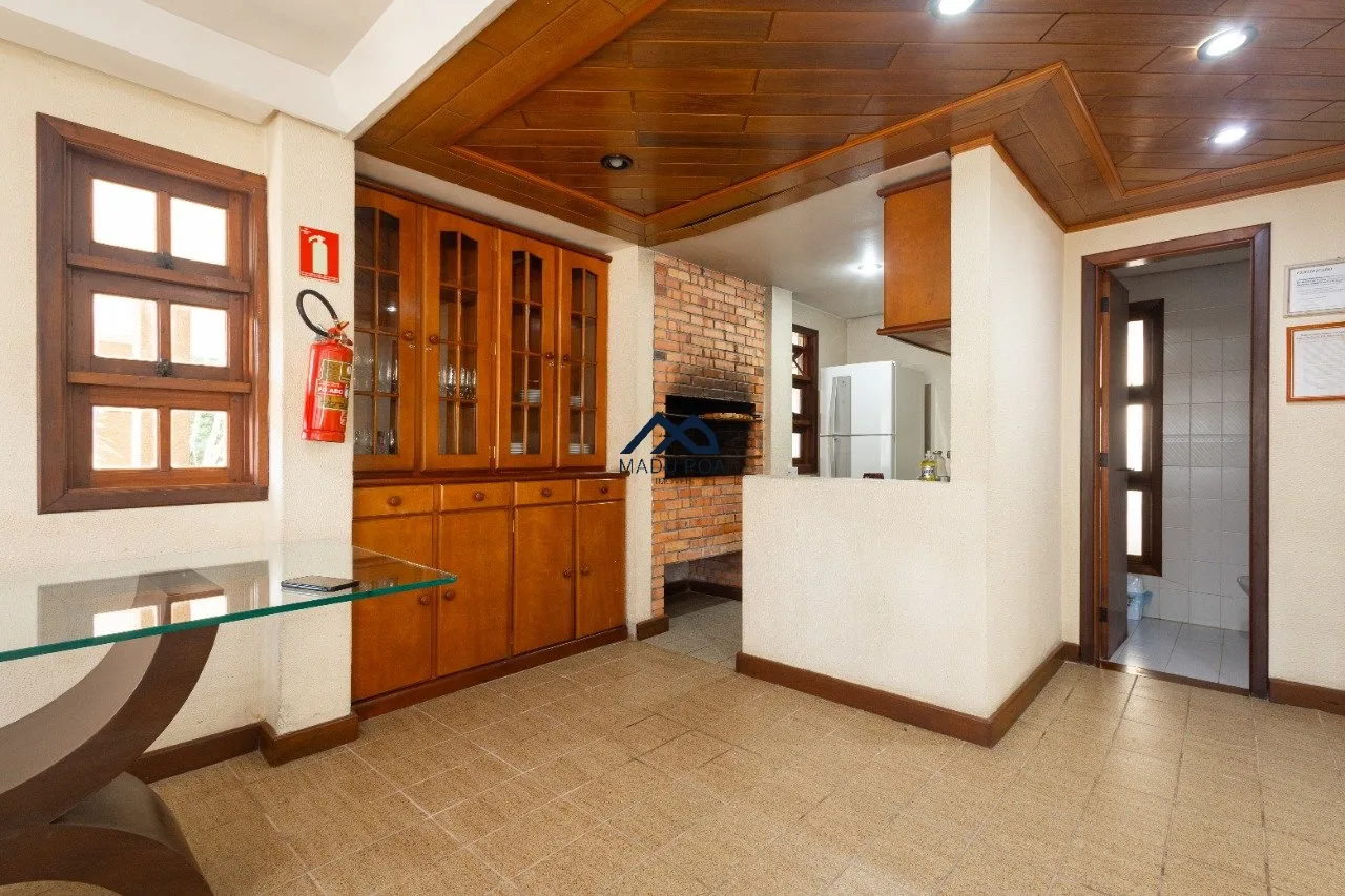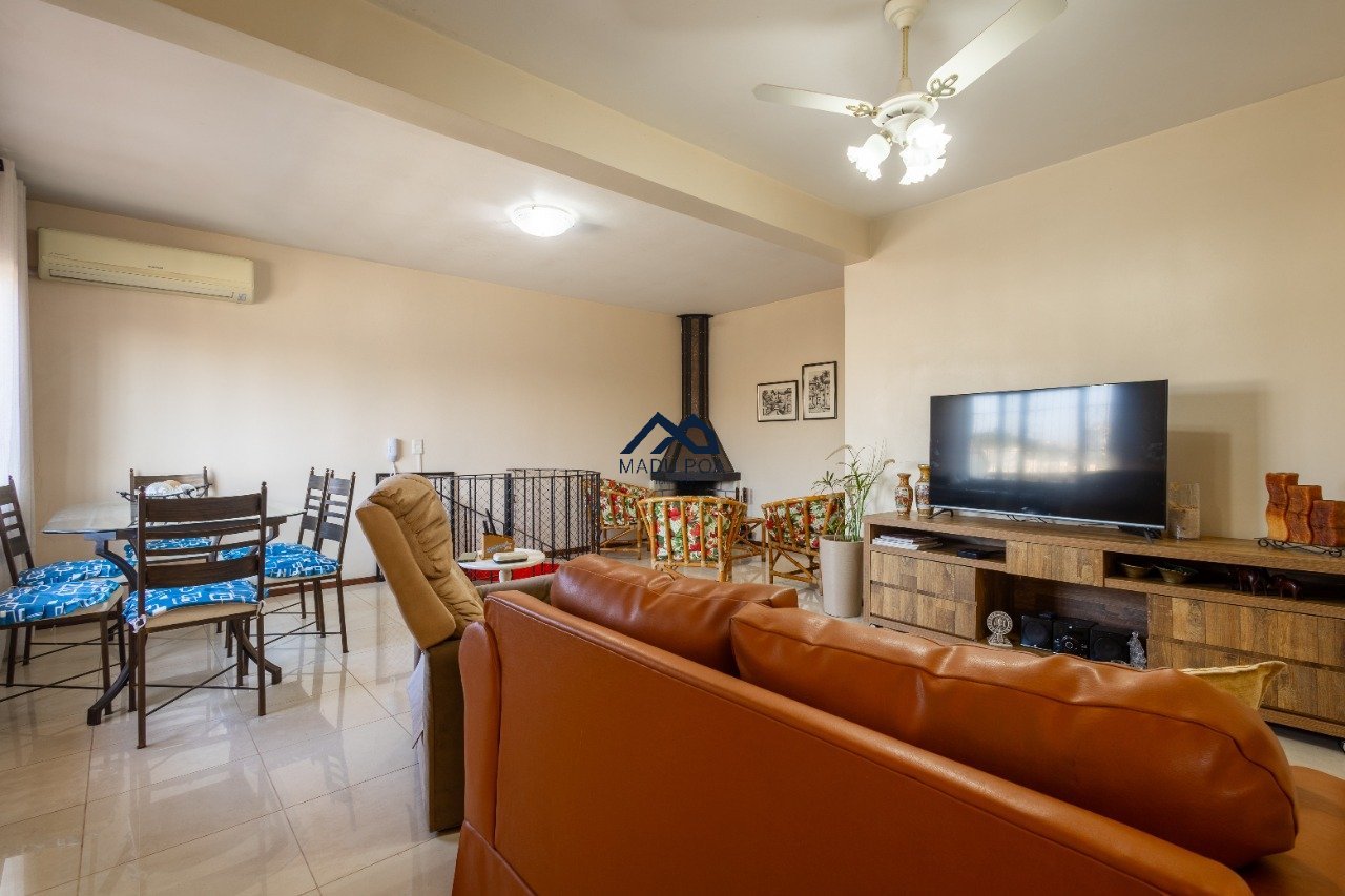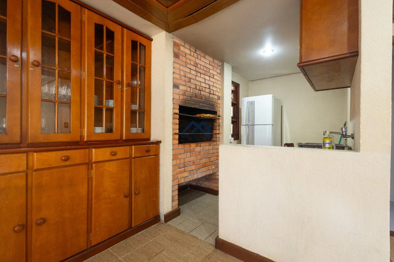 2°Pavimento: Amplo estar íntimo com lareira, banheiro completo, lavanderia e terraço com churrasqueira. Duas vagas de garagem.