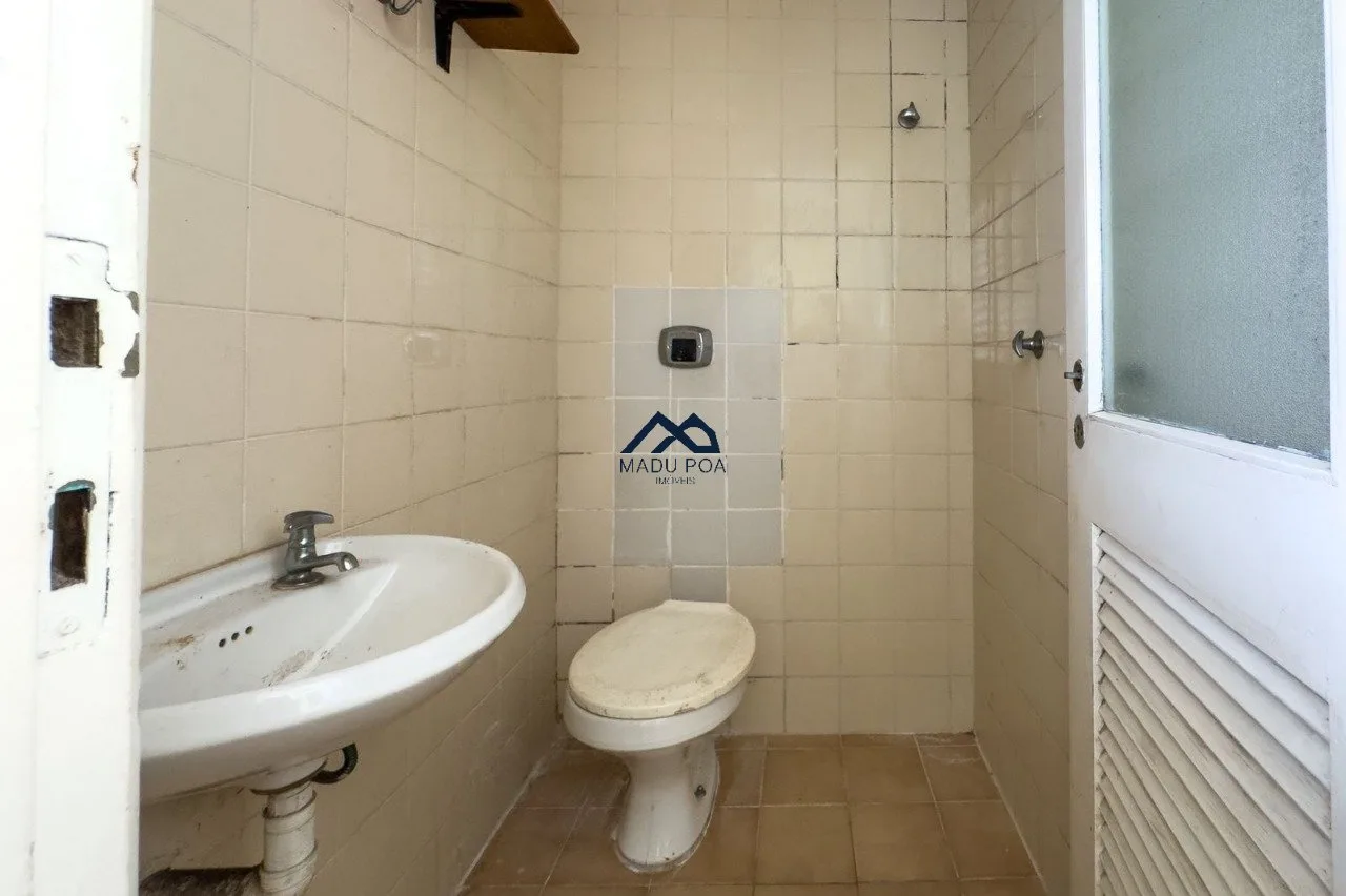 Cozinha planejada, área de serviço com lavabo. Na sala, escada em madeira dando acesso ao segundo pavimento.