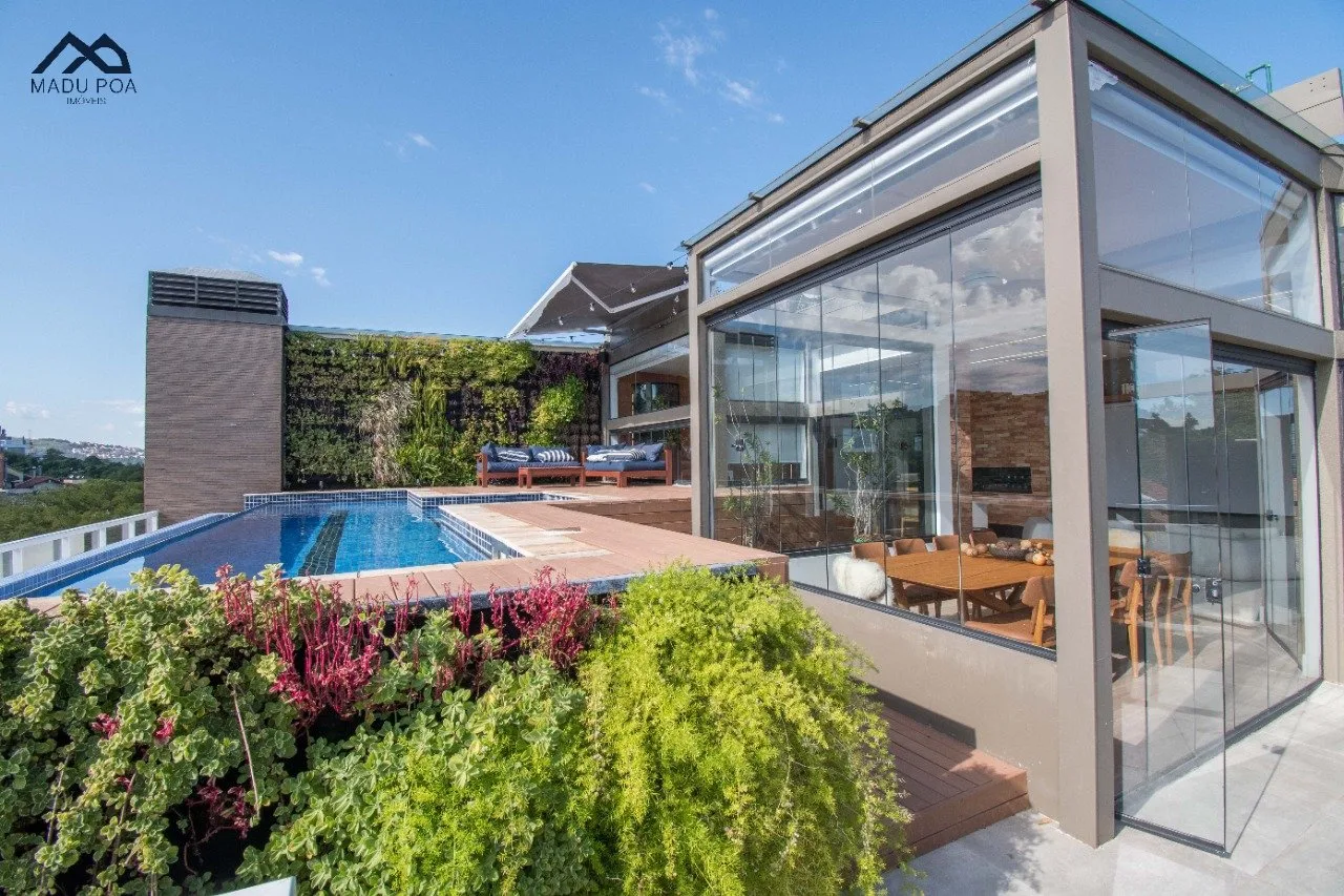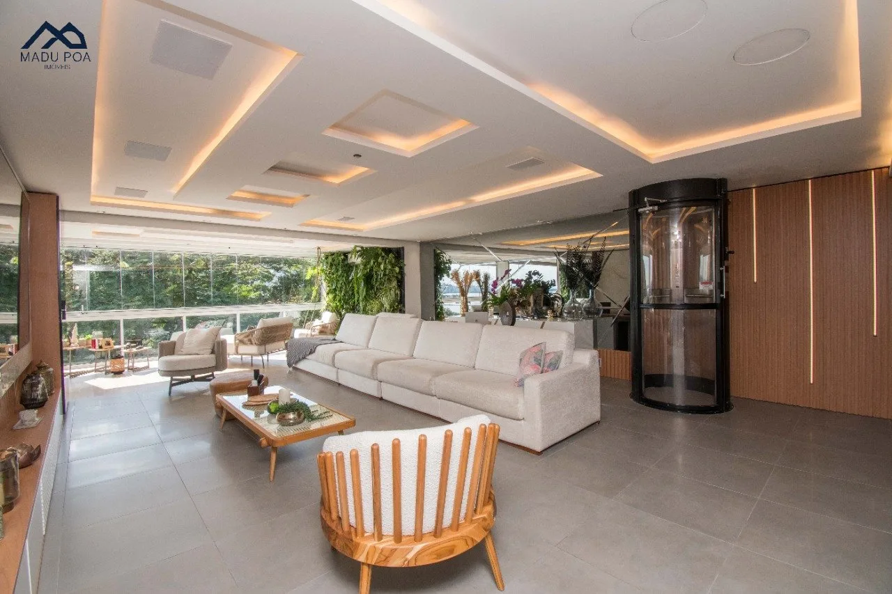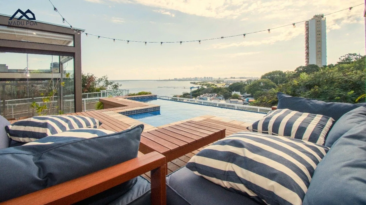Cobertura no bairro Cristal, próximo ao Barra Shopping Sul com vista deslumbrante para o rio e para o centro da cidade e alto padrão de construção, Mobiliada, automatizada com elevador interno privativo e isolamento acústico.