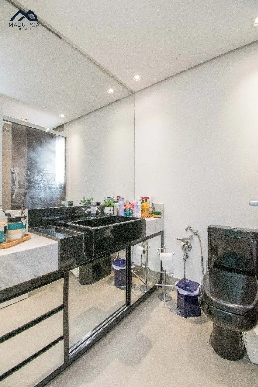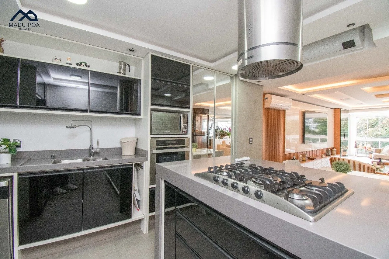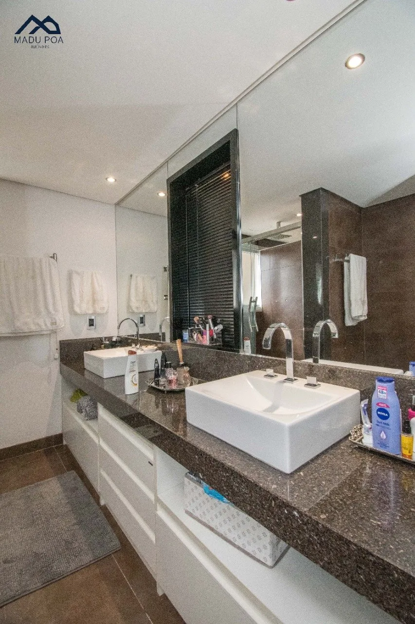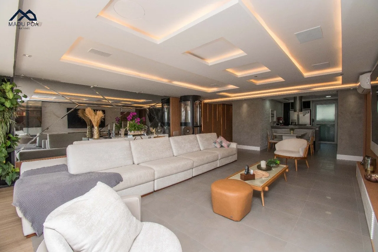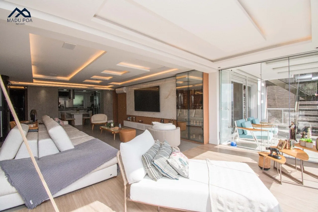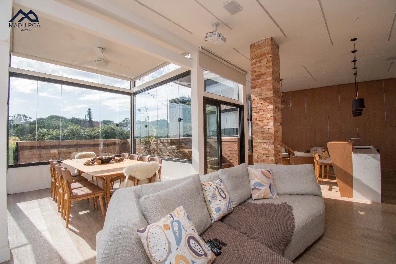 Possui living com 3 ambientes com lareira, varanda integrada e cozinha americana, lavabo, chapelaria, área de serviço e 03 suítes, sendo 01 delas master.