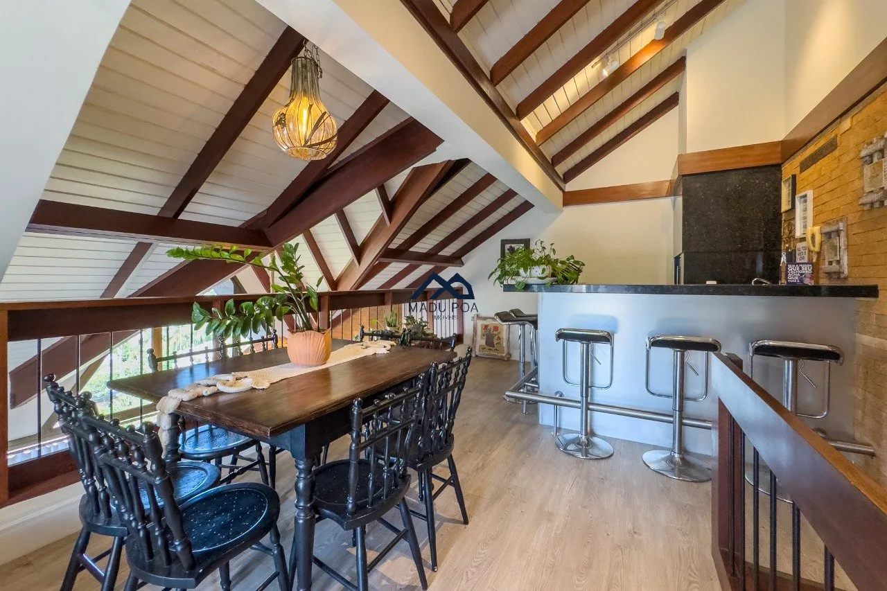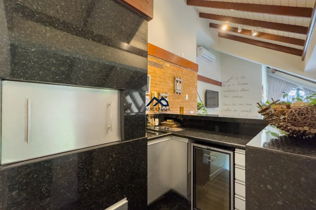 1ºPavimento: Living para dois ambientes com pé direito duplo e janela que vai do 1º ao 2º andar acompanhando pé direito e permtindo muita entrada de luz natural, lareira. Cozinha montada com móveis sob medida, área de serviço. São três dormitórios, sendo uma suíte. Todos os ambientes com móveis planejados e banheiros com ventilação natural