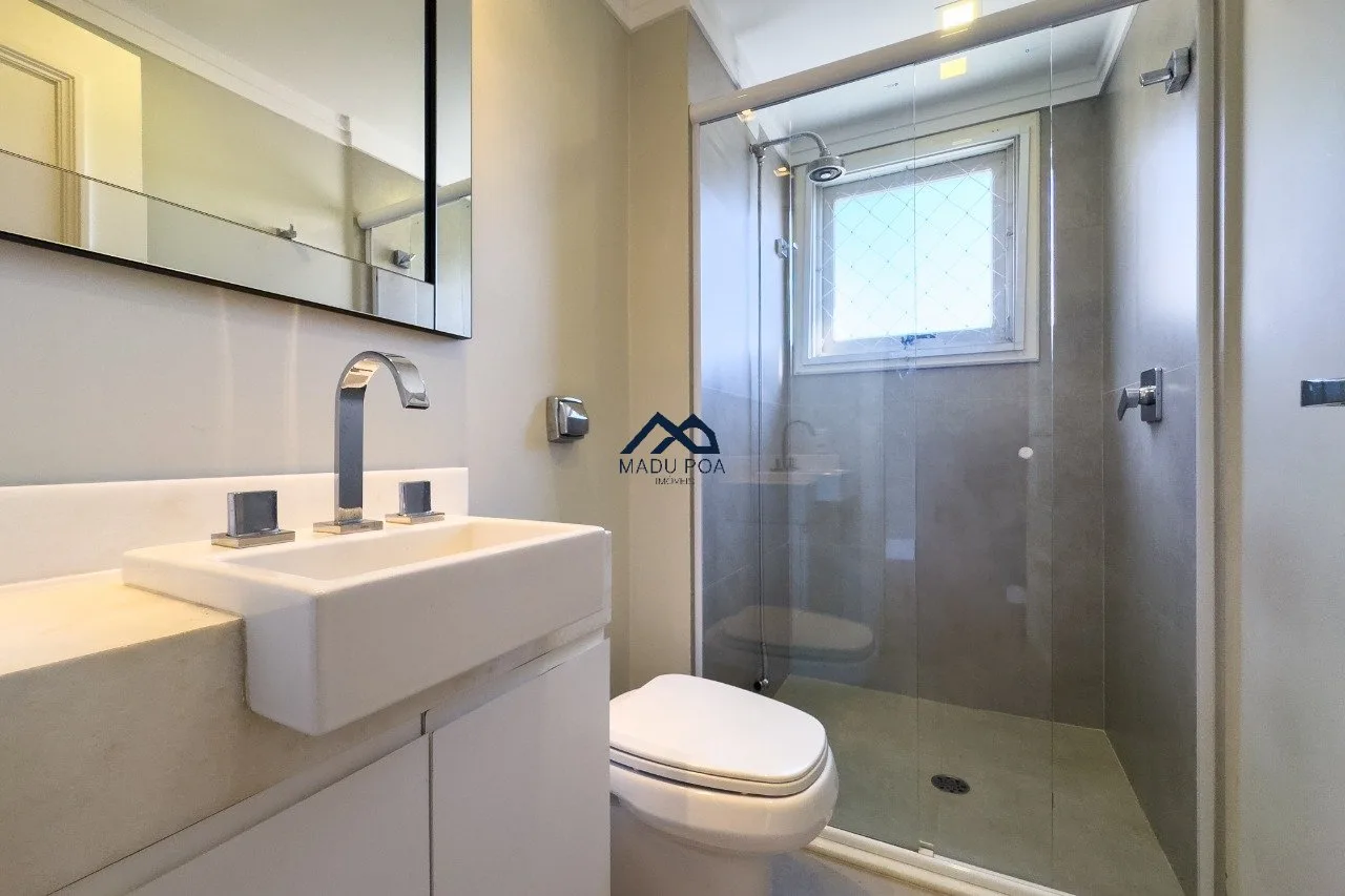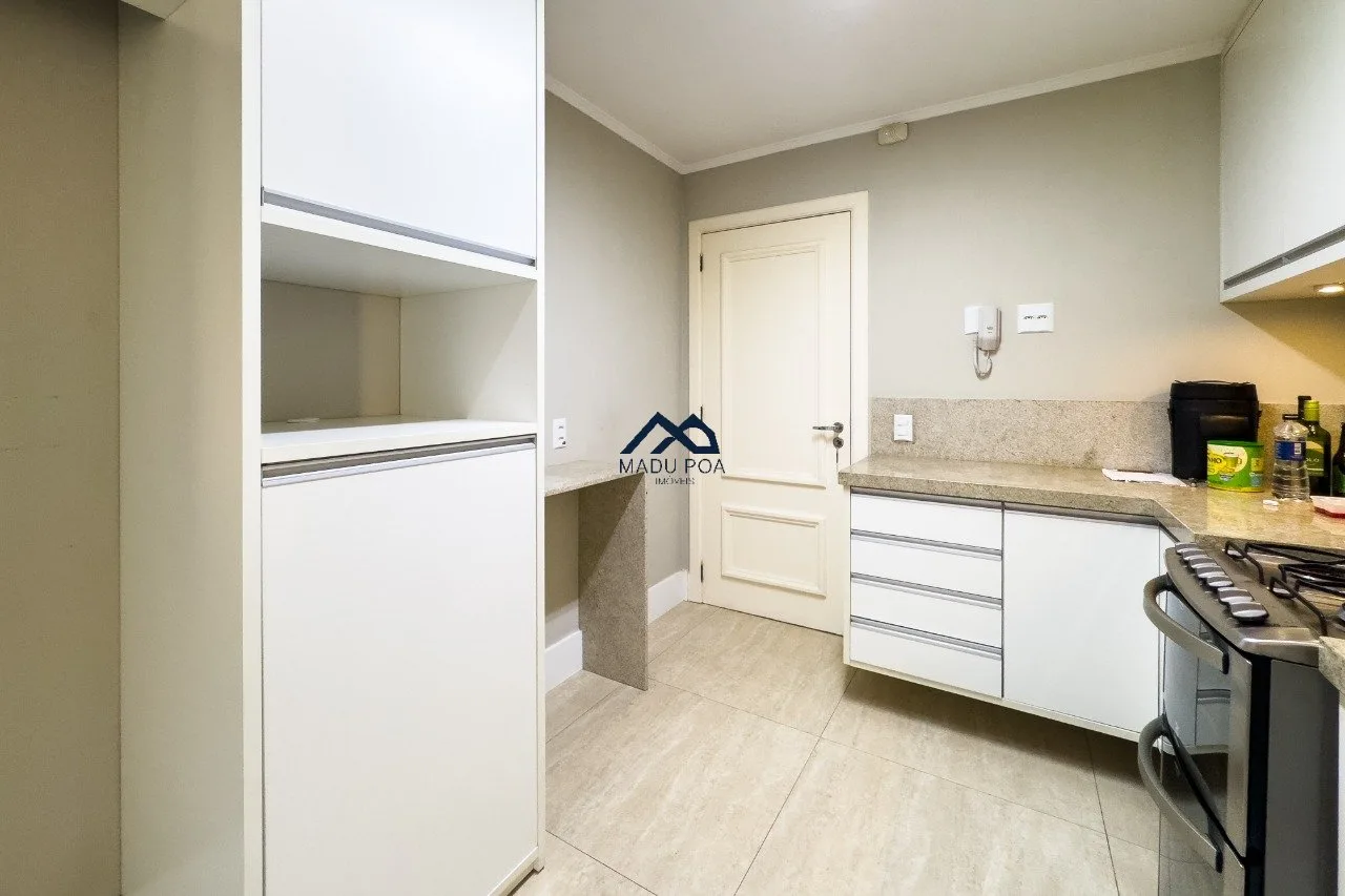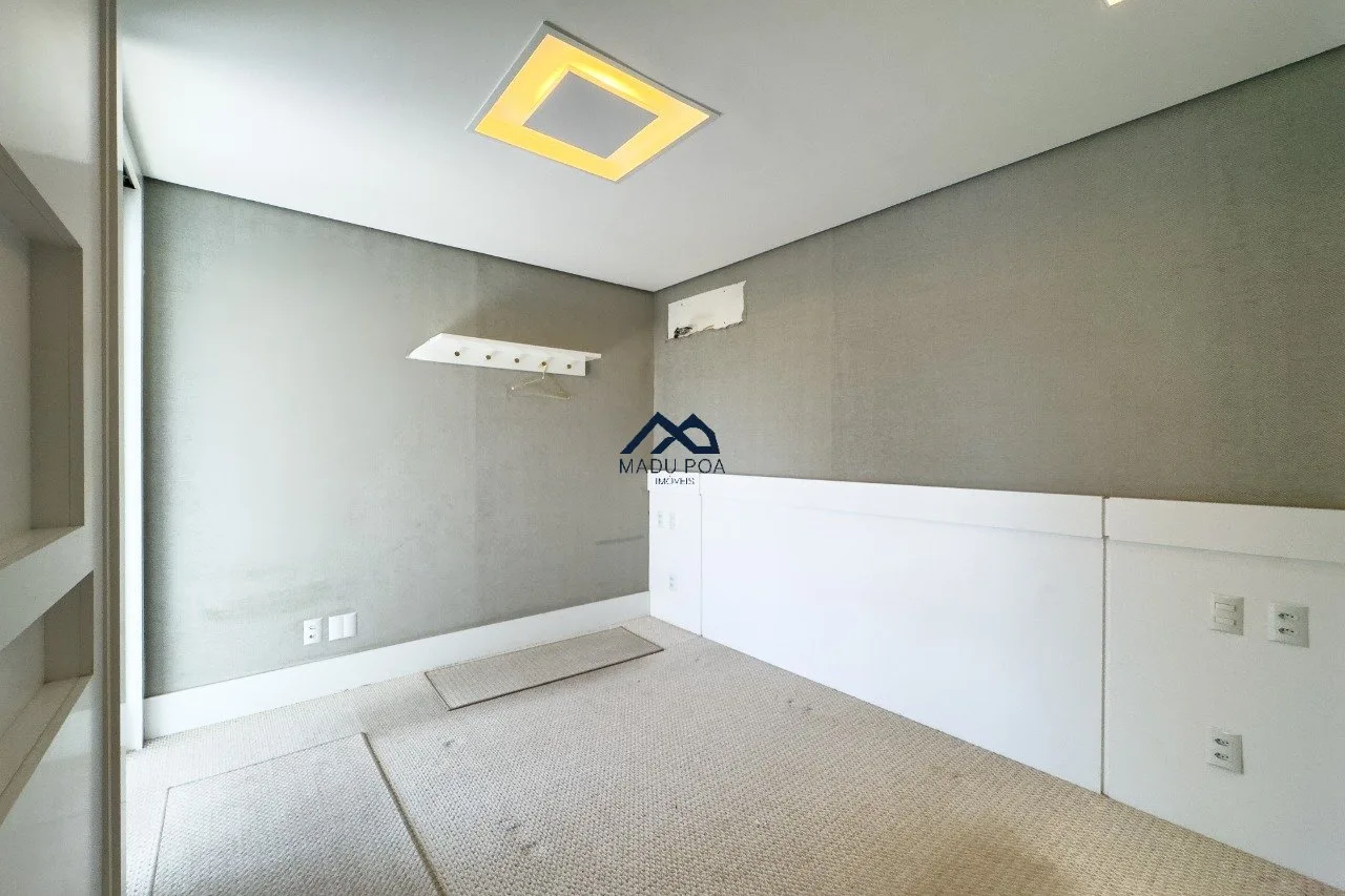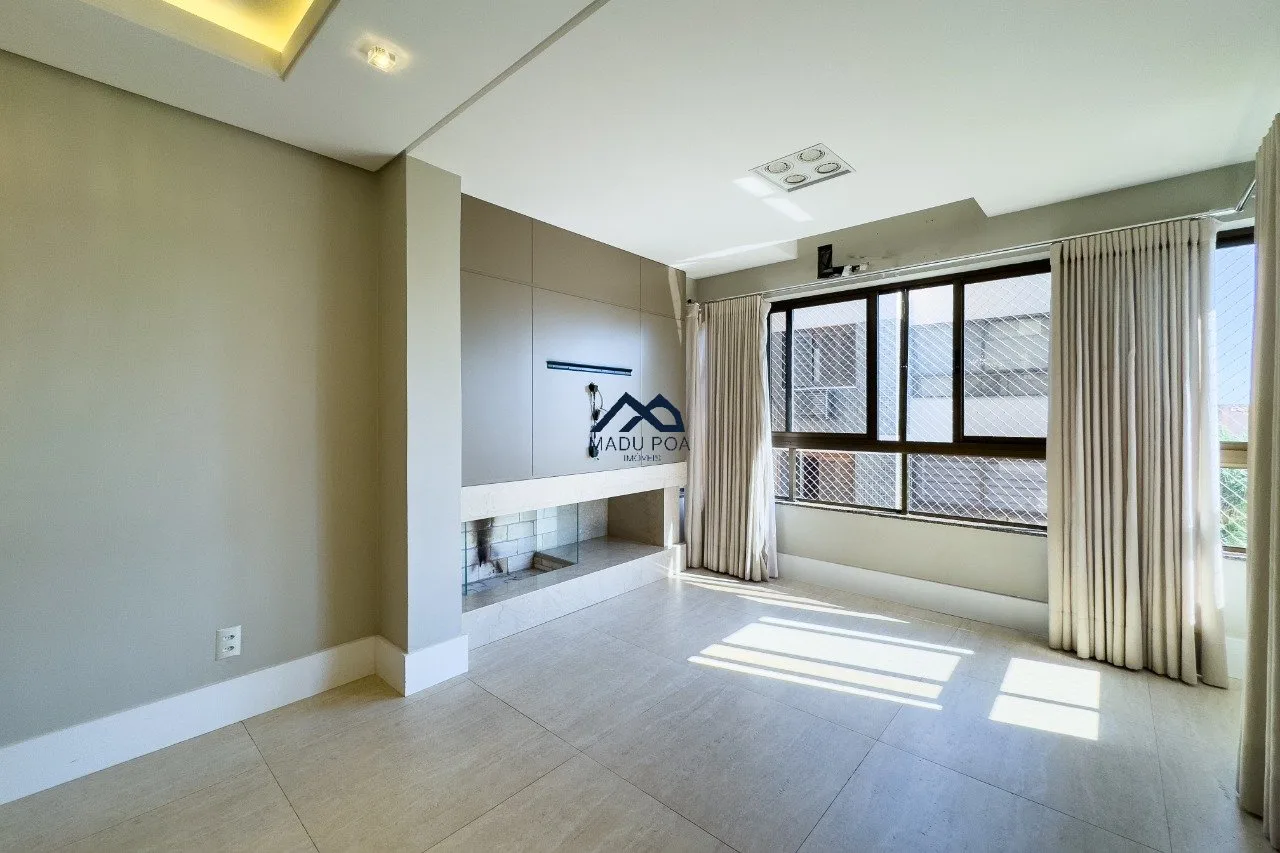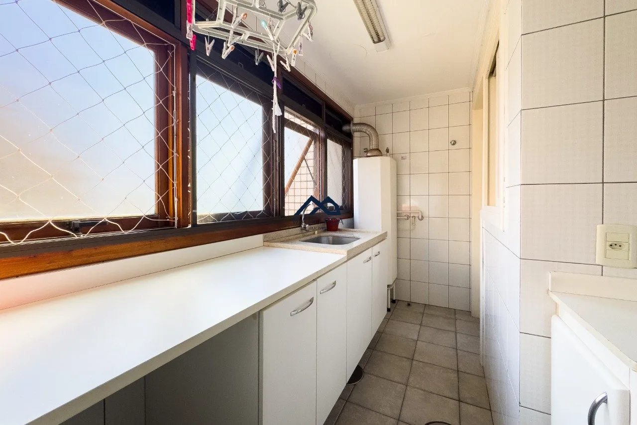 Amplo living com 03 ambientes, sacada totalmente envidraçada proporcionando um belo recanto com lareira. Todas aberturas em madeira de lei pintadas de branco fosco. cozinha planejada, área de serviço completa e dependência empregada com banheiro.