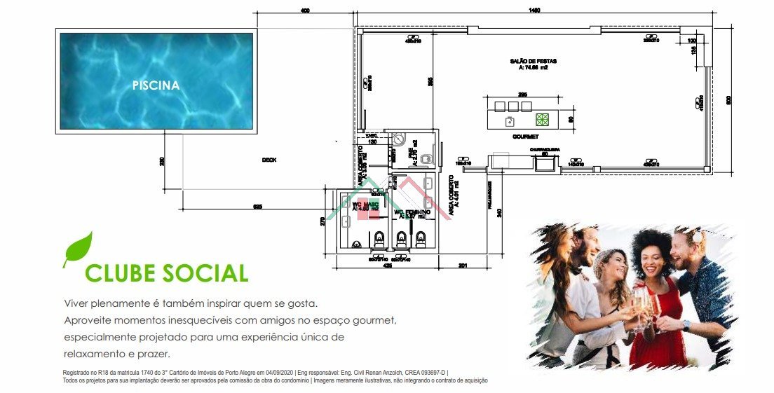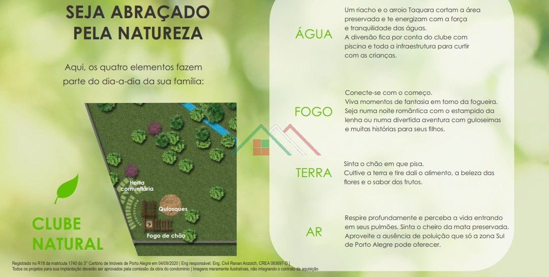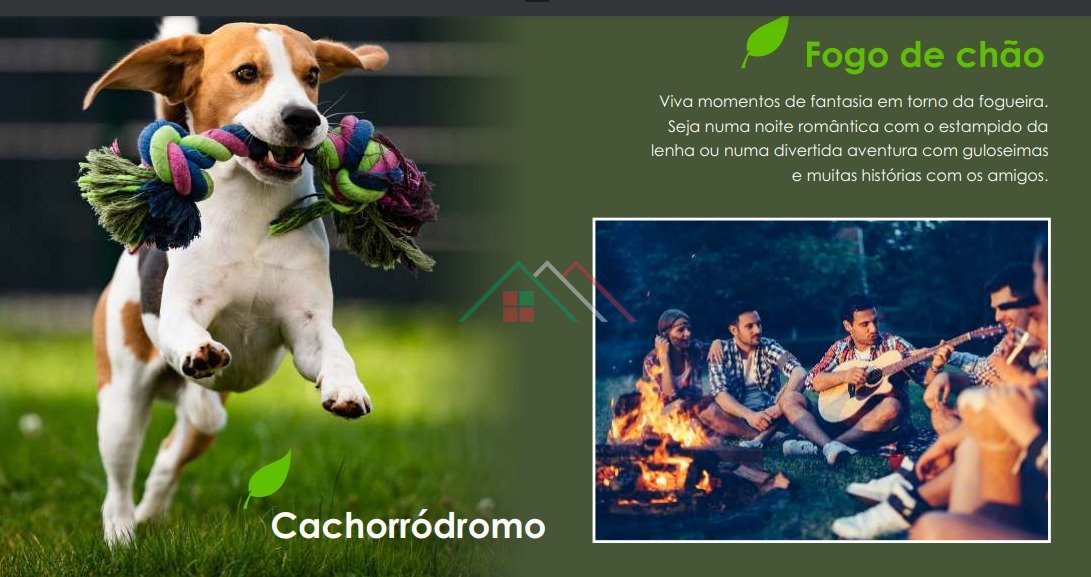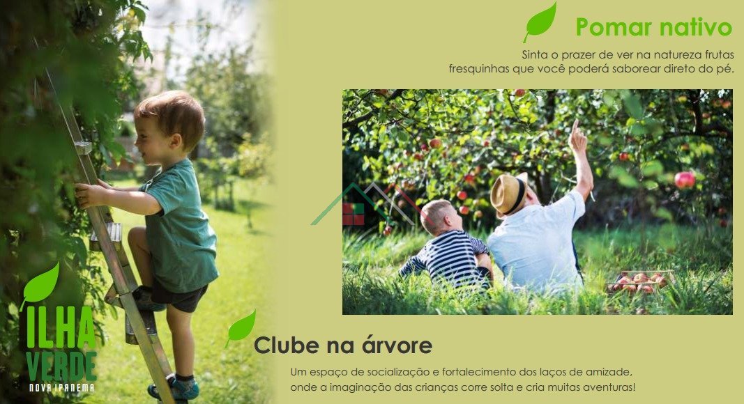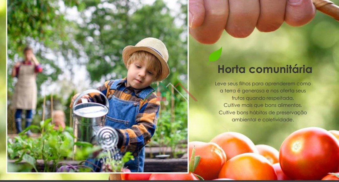 São 147 lotes, condomínio fechado com portaria 24 horas, piscina, salão de festas, quiosque, pomar, horta comunitária, fogo de chão.
